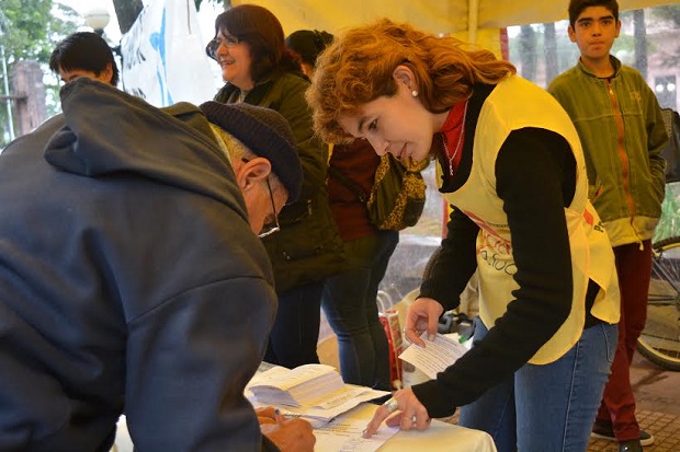Con una gran muestra de solidaridad y apoyo por parte de la comunidad, se llevó a cabo la segunda jornada del acampe de las promotoras y promotores de Salud en la plaza 9 de Julio, actividad enmarcada en un plan de lucha para denunciar y combatir la precarización laboral, la explotación, la discriminación salarial y la violencia de género que el gobierno provincial ejerce contra el sector.Organizadas en la Asociación de Trabajadores del Estado (ATE), las promotoras montaron una carpa informativa donde hasta el día de la fecha y pese a la lluvia que asoló en la segunda jornada, se acercaron cientos de personas a interiorizarse de la situación y sumar su adhesión a una lucha que recién comienza y que deja tras de sí, doce años de silencio, dolor y humillación.“Estamos agradecidas tanto a ATE como a la comunidad y los medios de comunicación, porque miles de personas se acercaron en esta jornada a darnos su apoyo. Muchas no podían creer que cobramos 2400 pesos y que trabajamos bajo un régimen de explotación. Este es el inicio de una lucha por nuestra dignidad, porque perdimos el miedo y cientos de promotoras de toda la provincia lo están perdiendo” indicó una de las delegadas del sector, Victoria Ruizdiaz.Una de las promotoras que llegó desde el norte provincial para sumarse a la protesta, expresó que “hasta nos llegaron a encerrar a doblar votos durante campañas políticas, a hacer de mozas, de limpieza, de tareas totalmente impropias, este gobierno usó a los promotores de salud como sus esclavos y por una miseria con la excusa de que nos estaba becando, esa mentira se está terminando y desde ATE exigimos salarios dignos y pase a planta permanente”. Desde ATE Misiones, señalaron que tras este acampe, si el Gobierno provincial no ofrece soluciones en lo inmediato, se redoblarán las acciones en el marco de un plan de lucha sostenido en el tiempo y con acciones directas en los ámbitos públicos y jurídicos correspondientes. “Este es un sector laboral que no puede esperar más. La violencia que se viene ejerciendo contras las promotoras de Salud lleva doce años y hoy estamos luchando por revertir la historia. El Estado no puede tener esclavos en pleno siglo XXI” indicaron desde el gremio. Fuente y Fotos: ATE Misiones