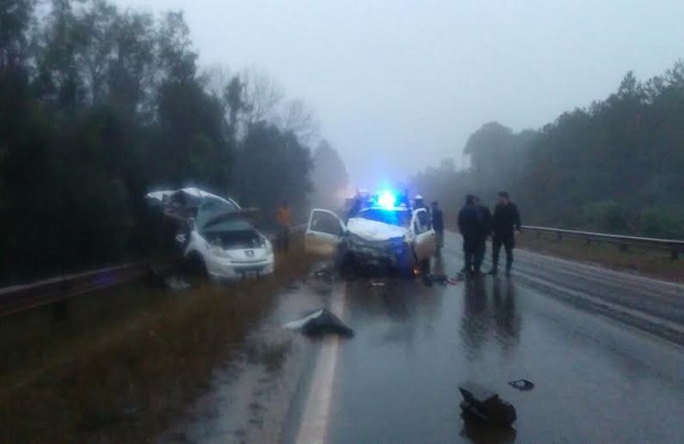 Pasadas las 15:30 de este jueves, en el kilómetro 1.429 de la ruta nacional 12, un vehículo Fiat Astrada colisionó frontalmente -por motivos que se investigan- con un Peugeot 207 en donde viajaban Graciela Barreiro y su hijo Nahuel Sunchaski (18), quienes fallecieron en el acto por las graves lesiones ocasionadas por el impacto. Por su parte, los ocupantes del primer auto -un hombre de 29 años que iba al volante y otro de 45 que viajaba como acompañante- fueron trasladados al hospital Ramón Madariaga con lesiones graves.En el lugar trabajó personal de la comisaría local y de la Policía Científica.El accidente provocó que durante varias horas permaneciera cortado el tránsito sobre la ruta.Otro muerto en EldoradoPreviamente, alrededor de las 12:00, se había registrado otro fallecido y varios heridos como consecuencia del despiste de una camioneta en la calle Formosa casi Capitán Nahuer, en el kilómetro 6 de la Capital del Trabajo.Allí, por causas que se investigan, una camioneta F-100 que transportaba leña y era conducida por Salvador Campi (60) con cuatro acompañantes -identificados por la Policía como Jorge B., Julio B., Saul D. y Pablo A., todos mayores de edad- cayó en un barranco aparentemente tras un desperfecto en el motor del rodado.Por el hecho, el conductor de vehículo falleció en el acto, mientras que los demás ocupantes sufrieron lesiones de distinta consideración y fueron trasladados al hospital Samic local.En el lugar actuó personal de la Policía Científica y de la comisaría seccional Primera.Fotos: Policía de Misiones
