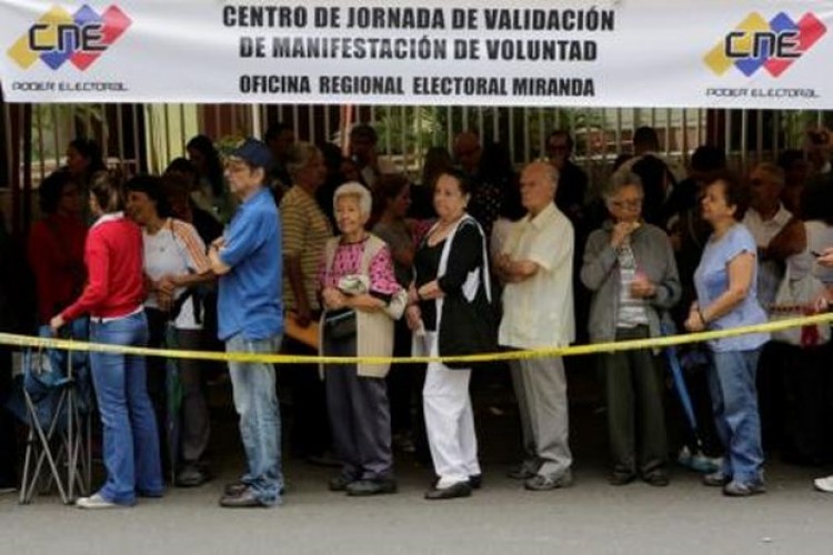 Miles de venezolanos hacían enormes filas este lunes en colegios, estadios, bibliotecas y sedes del árbitro electoral para validar las firmas que suscribieron para pedir la activación de un referendo para revocar el mandato del presidente Nicolás Maduro.El proceso es un paso más en el largo camino que debe recorrer la oposición para que sea celebrada una consulta popular sobre el futuro de Maduro, cuyo mandato termina en enero del 2019 y a quien acusan de llevar al país a una aguda crisis.La presidenta del Consejo Nacional Electoral (CNE), Tibisay Lucena, informó hace dos semanas que de las casi dos millones de firmas que recogió la oposición en mayo para convocar al revocatorio, unas 605.000 fueron invalidadas.Esto generó el rechazo airado de los principales líderes de la oposición, entre ellos del ex candidato presidencial Henrique Capriles, cuya firma fue excluida.A pesar de la masiva exclusión, quedaron habilitados para validar sus firmas 1,3 millones de ciudadanos de los casi 200.000 necesarios para activar el mecanismo de consulta popular permitido por la Constitución venezolana."Estoy en esta cola porque la situación es insoportable, no queremos esta vida para Venezuela", dijo Marina Serrano, una jubilada de 72 años en una larga fila en la ciudad de San Cristóbal, en el occidente del país. "Sufro de artrosis, pero no me importa, estoy aquí sentadita".La oposición reclamó que el CNE colocó los 128 puntos para validar las firmas en zonas alejadas de las principales ciudades con el objeto de desmovilizar a la población. A pesar de ello y de la lluvia, miles de venezolanos acudían a verificar sus datos filiatorios.La validación continuará hasta el viernes, luego de lo cual el CNE tiene hasta el 26 de julio para revisar las firmas.Largo procesoSegún la oposición, el CNE está dilatando el referéndum para que no se realice este año, ya que la Constitución estipula que si Maduro es revocado a partir del 2017 será su vicepresidente quien asuma su mandato y no se realizarían nuevas elecciones.De proceder la validación, la oposición deberá reunir 3,9 millones de firmas en no más de tres días. En el caso de lograrlo, el CNE tiene 15 días para revisarlas, pudiendo rechazarlas y solicitar nuevas firmas, como ocurrió cuando la oposición intentó revocar al fallecido Hugo Chávez en el 2004.Si el CNE considera que se ha alcanzado el número requerido de firmas y huellas, debe convocar al referéndum dentro de los siguientes 90 días. Para que el mandato de Maduro se considere revocado deben votar a favor de su salida igual o mayor número de electores de los que lo escogieron en el 2013: 7,5 millones.La oposición culpa al gobernante socialista de ser el principal responsable de la crisis que sufre Venezuela, con la inflación más alta del mundo, recesión económica y escasez de alimentos y medicinas."Quiero que salga Maduro. Ya está bueno de tanto engaño", se quejó María Luisa Caballero, una ama de casa de la ciudad de Maracaibo, en el oeste del país.Por su parte, el mandatario de 53 años, quien dijo recientemente que el revocatorio no se realizará este año, acusa a sus adversarios de fraguar una "guerra económica" con el fin de sembrar el caos y tomar el poder por la fuerza.Fuente: Medios Digitales
