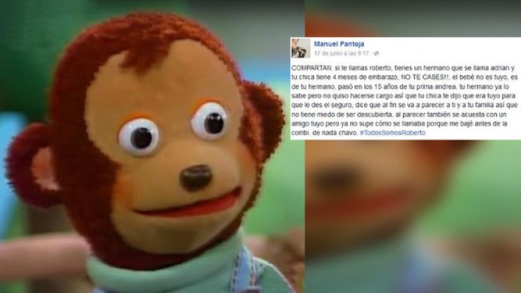La historia de Roberto y la supuesta infidelidad de la que fue víctima ha sido uno de los temas más comentados en las redes sociales en los últimos días, al punto que el hashtag #TodosSomosRoberto se convirtió en tendencia.La historia comenzó el pasado 17 de junio, cuando un usuario mexicano llamado Manuel Pantoja publicó en Facebook una conversación de la que había sido testigo mientras viajaba en un colectivo. La motivación para dar a conocer la historia fue la indignación que sintió al escuchar cómo se tramaba un engaño contra un hombre que él ni siquiera conocía: un tal Roberto."Si te llamas Roberto, tienes un hermano que se llama Adrián y tu chica tiene 4 meses de embarazo, ¡NO TE CASES! El bebé no es tuyo, es de tu hermano, pasó en los 15 años de tu prima Andrea, tu hermano ya lo sabe pero no quiso hacerse cargo", se leía en el revelador post de Facebook. Todo aquel que respondía al nombre de Roberto y vivía en México comenzó a preocuparse.La historia no quedó ahí, la anónima mujer tenía una cortada para ocultar su infidelidad: "Tu chica te dijo que era tuyo para que le des el seguro, dice que al fin se va a parecer a ti y a tu familia así que no tiene miedo de ser descubierta, al parecer también se acuesta con un amigo tuyo pero ya no supe cómo se llamaba porque me bajé antes de la combi".La historia ya es viral. Los internautas que se toparon con la publicación no querían quedarse con los brazos cruzados y crearon la cruzada viral #TodosSomosRoberto. ¿El objetivo? Dar con el paradero del Roberto que reunía estas características.<p lang="es" dir="ltr">Cuando te llamas roberto, tu hermano adrian y tu novia esta embarazada de 4 meses!<a href="https://twitter.com/hashtag/todosomosroberto?src=hash">#todosomosroberto</a> <a href="https://t.co/ZCMhntEqtg">pic.twitter.com/ZCMhntEqtg</a></p>— Yo_sequenosenada (@yosyfer_26) <a href="https://twitter.com/yosyfer_26/status/745319159190392833">June 21, 2016</a><p lang="es" dir="ltr">Roberto no se caza! Menos mal <a href="https://twitter.com/hashtag/todosomosroberto?src=hash">#todosomosroberto</a> <a href="https://t.co/xUPo5bUYlO">https://t.co/xUPo5bUYlO</a></p>— Shisha madrina (@ale_lujan65) <a href="https://twitter.com/ale_lujan65/status/745330815630974976">June 21, 2016</a>.<p lang="und" dir="ltr"><a href="https://twitter.com/hashtag/todosomosroberto?src=hash">#todosomosroberto</a> <a href="https://t.co/8QhNJcg9Qp">https://t.co/8QhNJcg9Qp</a></p>— iNoelCarlos™ (@noelcarlos5) <a href="https://twitter.com/noelcarlos5/status/745123183238340608">June 21, 2016</a>.<p lang="es" dir="ltr">Aparece Roberto y termina con toda esta angustia que nos está matando! <a href="https://twitter.com/hashtag/todosomosroberto?src=hash">#todosomosroberto</a> <a href="https://t.co/LZmqxEDVwr">pic.twitter.com/LZmqxEDVwr</a></p>— Daniela Simonin (@DanielaSimonin) <a href="https://twitter.com/DanielaSimonin/status/744247017124204544">18 de junio de 2016</a>. <p lang="es" dir="ltr">No te cases, Roberto!!!!! Nooooo!!!!! ???????????? <a href="https://twitter.com/hashtag/todosomosroberto?src=hash">#todosomosroberto</a> <a href="https://t.co/uexs9YyfJx">pic.twitter.com/uexs9YyfJx</a></p>— Mario Peralta (@marioperalta) <a href="https://twitter.com/marioperalta/status/744246663158501376">18 de junio de 2016</a>No faltó alguno que quiso atribuirse la identidad del Roberto más famoso de las redes sociales, pero fue rápidamente desmentido por el autor de la publicación. Asimismo, hubo otros que fueron sindicados como el Roberto de la historia viral, pero deslindaron al no tener una pareja embarazada y menos un hermano. La búsqueda continúa.  Fuente:PR