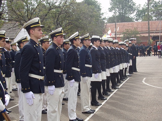 Este mediodía se llevó a cabo la ceremonia de “Jura a la Bandera” de los cadetes de cuarto año del Liceo Naval Militar “Almirante Storni”, junto con los cadetes de 4º año del Liceo Naval “Almirante Brown” que viajaron de la provincia de Buenos Aires especialmente para sumarse a este evento.La ceremonia se realizó en la Plaza de Armas del Instituto y estuvo presidida por el Director del Liceo Storni, Capitán de Navío Infantería de Marina Francisco Daniel Pellegrino.También asistió el Ministro de Gobierno de la pcia. Dr Marcelo Pérez, la Ministra de de Educación Ivonne Aquino, funcionarios de gobierno provincial y municipal, miembros de otras fuerzas, padres, docentes, personal civil y militar del liceo, graduados y familiares de los cadetes.Durante el acto, se hizo entrega de presentes a personal civil jubilado, agradecimientos y entrega de espadas a los suboficiales recientemente ascendidos. También hubo confirmación de brigadieres y se entregaron distintivos a los cadetes con mejores promedios en el 1º trimestre del ciclo lectivo 2016.Luego del ingreso de las autoridades, se entonaron las estrofas del Himno Nacional Argentino, interpretados por la Banda de Música de la Policía de la Provincia de Misiones, y el Capellán del Liceo procedió a la bendición de espadas y distintivos que luego de la lectura de órdenes correspondientes, fueron entregados.Seguidamente, los cadetes de cuarto año del liceo, adoptaron el dispositivo para la jura de la bandera y el director del instituto pronunció una alocución. Refiriéndose a la entrega de espadas a los Suboficiales dijo: “Mandar es preparar el alma de los subordinados y recién después dar las ordenes de forma tal de obtener una ejecución tan pronta, inteligente y completa como sea posible. Ustedes deberán organizar y dirigir tareas pero fundamentalmente deberán instruir y educar a sus subordinados”.Luego se dirigió a los cadetes que fueron confirmados como brigadieres del cuerpo y les señaló: “hoy se merecen que la dirección de este instituto los confirme como brigadieres, o sea como los directos colaboradores de los oficiales en la conducción y manejo de vuestros camaradas más jóvenes”. Asimismo el Capitán Pellegrino agregó: “Tengan siempre presente que el respeto y el ejemplo son herramientas fundamentales en todo orden de la vida”.Por otro lado, en cuanto a los reconocimientos de aplicación y conducta correspondientes al primer trimestre del año, a los cadetes que se han destacado en estudio y en el cumplimiento de las normas de convivencia que se exigen en el liceo, resaltó que “continúen en la búsqueda permanente de la excelencia académica en un marco de respeto, orden y valores que acompañan la formación integral. Mantengan ese rumbo, recalcó”. Finalmente, en su alocución se dirigió a los cadetes que juraron a la Bandera: “Hoy jurarán fidelidad a la bandera la promoción 35º del Liceo Storni y la promoción 62º del Liceo Brown, y dos marineros pertenecientes a este destino.“Frente a ustedes está presente la bandera, la misma que nació por necesidad de identificarnos y creció en medio de tristes desavenencias, es la misma que orgullosa y triunfante ondeó en los ríos, los mares y tierra, asegurando primero nuestra independencia y ganando luego la libertad de países hermanos”.“La misma que día a día se iza desde Iguazú a Ushuaia. Por eso, hoy el compromiso que van a tomar con la bandera es integral y abarcativo. Implica mucho más que dos palabras dichas con emoción”. “Es una obligación de por vida, porque no se defiende a la bandera o a la patria sólo en el combate, la defensa es de todos los días, estudiando, trabajando y cumpliendo las leyes”, concluyó el Director del Liceo Storni. Luego se leyó la fórmula de rigor en la que los cadetes de la promoción 35º del Liceo Storni y 62º del Liceo Brown, juraron fidelidad a la Bandera Nacional, finalizando con la rendición de honores y el desfile del cuerpo de cadetes.