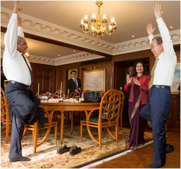 Hemos querido difundir esta encantadora foto, en la que vemos al Secretario General de la Organización de las Naciones Unidas experimentando personalmente algunas técnicas del Hatha Yoga, en relación con la celebración del primer Día Internacional del Yoga en el año 2015. Éste es su mensaje:“Durante una visita a la India realizada este año, tuve la oportunidad de practicar yoga con uno de mis asesores principales… es una antigua disciplina proveniente de un entorno tradicional que ha crecido en popularidad y es disfrutada por practicantes de todas las regiones del planeta. Al proclamar el 21 de junio como el Día Internacional del Yoga, la Asamblea General reconoció los beneficios holísticos de esta disciplina atemporal y su compatibilidad inherente con los principios y valores de las Naciones Unidas.“El yoga ofrece un medio sencillo, accesible e incluyente para promover la salud y el bienestar físico y espiritual. Inspira el respeto por los demás seres humanos y el planeta que compartimos. Y no discrimina; en diversos grados, todas las personas pueden experimentarlo, independientemente de su fuerza, edad o capacidades relativas. Es lo que descubrí al tratar de hacer mi primera ásana, una postura que imita la forma de un árbol y es adecuada para principiantes. Me costó un poco lograr el equilibrio, pero una vez que lo hice pude apreciar el simple sentimiento de satisfacción que el yoga puede ofrecer.“Los invito a apreciar los beneficios de esta práctica en lo que respecta al bienestar individual y a nuestro esfuerzo colectivo para mejorar la salud pública, promover relaciones pacíficas y auspiciar una vida digna para todos.” Ban Ki-moon.Al felicitar a los organizadores de los hermosos encuentros realizados en nuestro ámbito, es oportuno recordar que esta celebración fue impulsada desde Portugal en el año 2001 como Día Mundial del Yoga y que su Manifiesto propiciaba la cultura de la paz, el valor de la vida y la salud integral, la longevidad funcional, la autorresponsabilidad y la autodisciplina, con conciencia plena de la relación Cuerpo-Energía-Emociones-Mente. Ya en el año 2010, las asociaciones portuguesas de nuestra disciplina convocaban en esta fecha a “una mega-aula de Yoga”, expresando su anhelo de que “sea el Día de Ahimsa (no violencia), de respeto por la vida, por el fin de los derramamientos de sangre y de las agresiones en todo el planeta; el Día por la Paz Mundial y por una Consciencia Planetaria Global y Justa”. No pudo imaginar todo esto el Maestro Iyengar en los ’70 cuando dijo: “El objetivo del Yoga es calmar el caos de emociones en conflicto”. Tampoco lo imaginó Beatríz Spinosa a comienzos de los ’90 cuando sintetizaba el efecto de las posturas: “mediante la concentración en ellas mismas y la respiración consciente y suave, aquietan al cuerpo y abren paso al libre flujo de la energía que llega a todas las células produciendo un consecuente estado de calma y vitalidad. Una calma benéfica y balsámica. Un bálsamo frente a la urgencia, la angustia y el miedo, de los cuales ninguno de nosotros está exento”.Colabora: Ana Laborde Profesora de Yoga [email protected]. 4430623