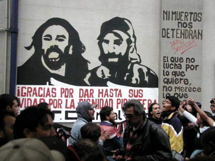 A 14 años del asesinato de Maximiliano Kosteki y Darío Santillán, familiares de las víctimas y militantes de agrupaciones de izquierda realizaban esta mañana un corte de tránsito en el puente Pueyrredón, una de las principales conexiones entre la ciudad y la provincia de Buenos Aires."Seguimos exigiendo juicio y castigo a (Eduardo) Duhalde, (Felipe) Solá y todos los responsables políticos del asesinato de nuestros compañeros", afirmaron en un comunicado, en el que anunciaron la realización del corte y un acto para honrar a Kosteki y Santillán, a partir de las 12.00 del mediodía, en el puentePueyrredón.Fuente: Agencia de Noticias Argentinas