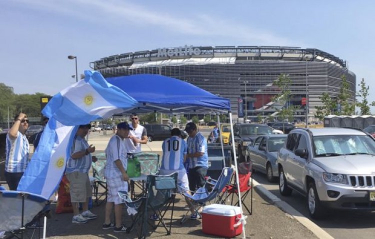 El estadio MetLife de Nueva Jersey los vio llegar, los escuchó con canciones de aliento para su equipo, sin tener en cuenta una temperatura alta, alimentada por mucho cemento y escaso espacio verde, con el paso firme y la ilusión intacta.Fueron los hinchas argentinos, en los primeros días del verano estadounidense, los que cantaron por el equipo como si estuviesen en su tierra acompañados de bombos, banderas (nunca se vieron tantas en un partido de Copa América) y camisetas, ya sea con dedicatorias al crack rosarino Lionel Messi o el recuerdo eterno a Diego Maradona.En toda la Copa América Centenario no se vio a tantos argentinos juntos, en las horas previas a un cotejo, manifestarse de esa manera, en un país con poco arraigo futbolístico que se evidenció en las calles, en los medios de comunicación y en los partidos también.El evento los unió. Extraños, desconocidos entre sí, pero unidos por una sola causa: el sueño de ver a Messi levantando la copa.Un día de sol pleno, ese que hace cosquillas en el rostro hasta dejarlo colorado, los acobijó con calor hasta el ingreso al estadio imponente que luego se vistió de celeste y blanco que significó una victoria clara entre los asistentes frente a los de la "Roja" a diferencia del año pasado cuando por razones obvia, en Santiago, el fervor fue trasandino.No faltaron las camisetas de clubes como River Plate (en el día que su descenso histórico cumplió cinco años), Independiente, San Lorenzo, Boca, Instituto de Córdoba y San Lorenzo, entremezcladas con las de Barcelona, una influencia marca registrada de Messi, y un grupo nutrido de colombianos.Bajo el ritmo de la música impuesta por un DJ, los hinchas bailaron, se entusiasmaron para calmar la ansiedad y los nervios de cara al partido.Las pantallas gigantes, ubicadas en cada rincón del estadio, presentaron las alineaciones y fue Lionel Messi el más aplaudido en la Argentina, mientras que los "albicelestes" demostraron que eran más cuando el conjunto chileno fue anunciado.El ingreso de los equipos, el canto en los himnos (con un estruendoso "¡Oh juremos con gloria morir!") y el saludo entre los protagonistas solo tuvo una variante con respecto a las anteriores con la aparición previa del presidente de FIFA, Gianni Infantino, quien estrechó la mano de cada uno de los jugadores.Cuando la pelota rodó, se acabaron las palabras, pero para los hinchas la fiesta recién comenzó.Fuente: TélamFotos: Noticias Argentinas y Télam
