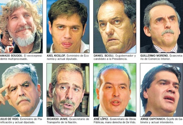 El procesamiento dispuesto el jueves por la justicia contra exjefes de Gabinete del kirchnerismo por incumplir sus deberes públicos en el control de fondos del programa Fútbol para Todos (FpT) engrosa una nómina de ex funcionarios del Frente para la Victoria (FpV) implicados en causas judiciales, reactivadas en los últimos meses con el cambio de gobierno.Además de los exjefes de Gabinete Jorge Capitanich, Juan Manuel Abal Medina y Aníbal Fernández fueron procesados por la jueza federal María Servini de Cubría el exgobernador bonaerense Gabriel Mariotto y el excoordinador de FpT Pablo Paladino en una causa por incumplimiento de deberes por no haber controlado el uso de fondos en ese programa.Fernández carga -junto a los exministros de Salud Juan Manzur y Daniel Gollán- con otro procesamiento en una investigación por supuestas irregularidades en la licitación del plan Qunita, que lleva adelante Bonadio.El jueves también el juez federal Ariel Lijo procesó al exsuperintendente de Servicios de Salud Héctor Capaccioli por supuesto “lavado de activos” provenientes del delito, a raíz de aportes de dinero por parte de droguerías, cuyo origen pudo ser el tráfico de efedrina, a la campaña presidencial del 2007 de Cristina Fernández de Kirchner.Pero la lista de exfuncionarios kirchneristas implicados en delitos por la justicia se abrió con el exsecretario de Transporte Ricardo Jaime, condenado por sustracción de pruebas y por recibir dádivas de empresarios, y en diciembre del año pasado, por su responsabilidad en la tragedia de Once.En el recuento, el caso de Ciccone Calcográfica fue uno de los más resonantes porque complicó al exvicepresidente Amado Boudou, procesado y a la espera del juicio oral por las irregularidades detectadas en la venta de la empresa.Boudou es investigado en otras tres causas. Una de ellas, por enriquecimiento ilícito, otra, por insertar datos falsos en su DNI, y la tercera, por la adquisición de 19 vehículos de alta gama para el Ministerio de Economía, por los cuales se habrían pagado sobreprecios. En esta última investigación también está implicado el extitular de la Sigen, Daniel Reposo.La expresidenta Cristina Fernández de Kirchner también forma parte de la nómina de procesados desde mayo último cuando el juez Claudio Bonadio dictó su procesamiento -junto al exministro de Economía Axel Kicillof, al extitular de la Comisión Nacional de Valores (CNV) Alejandro Vanoli y a otros 15 funcionarios- en el marco de la causa dólar futuro. Vanoli, al igual que el exsecretario de Comercio Guillermo Moreno, fue acusado por Bonadio por incitación a la violencia colectiva y peculado en un expediente abierto por el uso de cotillón con leyendas consideradas hostiles al Grupo Clarín. En esa causa corren la misma suerte el ex vicepresidente de la CNV Hernán Fardi y los exdirectivos Héctor Helman, Rodolfo Iribarren, Matías González y Mabel D’Orazio Cebey.Cristina Fernández de Kirchner, en tanto, se libró el año pasado de una imputación con gran peso mediático. Es la que había formulado en su contra el fallecido exfiscal Alberto Nisman por supuesto encubrimiento del atentado a la Amia, que finalmente fue desestimada el año pasado por el juez Rafecas, para quien “no hay un sólo elemento de prueba” de delito.En cambio, otro procesado del gobierno kirchnerista fue el extitular de la Unidad de Información Financiera (UIF) José Sbatella, quien según la Cámara Federal incurrió en violación de secreto al develar parte de una investigación interna que el organismo llevaba adelante contra joyerías.La tragedia de Once recibió como respuesta judicial la condena de los exsecretarios de Transporte kirchneristas Juan Pablo Schiavi (8 años) y Ricardo Jaime (6 años) por el delito de estrago culposo agravados y administración fraudulenta contra el Estado en un juicio que se realizó el año pasado.A ello se sumó que el mes pasado, el juez Bonadio procesó al diputado nacional Julio de Vido por “descarrilamiento de tren agravado” y “administración fraudulenta” y le trabó un embargo por 600 millones de pesos.Jaime y De Vido comparten responsabilidad también en una causa abierta por la compra de trenes inservibles a España y Portugal en 2005, en la que el exsecretario ya fue procesado.Las sospechas de enriquecimiento ilícito que sobrevuelan a varios exfuncionarios tuvieron un capítulo inédito la semana pasada con el arresto del exsecretario de Obras Públicas José López -investigado por el juez Daniel Rafecas- cuando intentaba deshacerse de casi 9 millones de dólares y un arma en un monasterio de General Rodríguez. En abril último el diputado nacional y ex secretario General de la Presidencia, Eduardo “Wado” De Pedro, fue imputado por presuntos sobreprecios en los gastos de viajes al exterior en 2015 de la expresidenta Cristina.El exgobernador bonaerense Daniel Scioli también tuvo que presentarse a declarar el año pasado en una causa por enriquecimiento ilícito en los tribunales de La Plata cuando ya competía por la Presidencia.Más lejos, en el 2014, resultó procesada la exsecretaria de Medio Ambiente Romina Picolotti, a quien Servini de Cubría investigó por “administración fraudulenta” por haber pagado “compras, almuerzos y viajes aéreos” con dinero de la secretaría a su cargo, en un proceso que está a la espera del juicio oral.También en el 2014 Servini de Cubría procesó a tres exfuncionarios de la Sedronar -secretaría encargada de luchar contra el narcotráfico- en una causa por falta de controles en la importación de efedrina: José Granero (extitular y también exdirector de Enarsa), el asesor Gabriel Abboud y el exdirector del registro de precursores químicos Julio De Orué.Lo que se vieneEste año también podría quedar comprometida la situación del exsecretario de Energía de la Nación, Daniel Cameron, sobre quien pesa un futuro pronunciamiento de la Cámara Federal de C