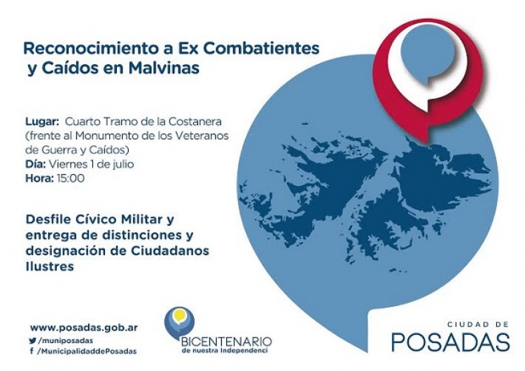 Este homenaje se encuentra en la Ordenanza III N°175, dirigido a todos los Ex Soldados, Oficiales, Suboficiales y Civiles Combatientes vivos o caídos que estuvieron en el denominado “Teatro de Operaciones Malvinas" (TOM) o en el área del Teatro de Operaciones del Atlántico Sur (TOAS), durante el conflicto bélico entre la República Argentina y el Reino Unido de Gran Bretaña e Irlanda del Norte.La inscripción se realiza en la Dirección de Derechos Humanos, ubicado en el cuarto piso del edificio municipal. Para ello, deberá cumplir con los siguientes requisitos:-Constancia de Residencia no menor a 5 años en la ciudad de Posadas.-Tener la condición de Veterano de Guerra mediante la presentación de un certificado original emitido por cada fuerza y refrendado por el Ministerio de Defensa de la Nación o Documento Nacional de Identidad donde conste la leyenda “Ex Combatiente Héroe de la Guerra de Malvinas”. En caso de fallecimiento, familiares deberán presentar el Acta de Defunción del Veterano de Guerra.-Certificado Expedido por el Ministerio de Gobierno de la Provincia de Misiones.-Documentación pertinente que acredite el vínculo con el Veterano de Guerra.-Están excluidas todas las personas que estén acusados de cometer delitos de lesa humanidad.El secretario de Gobierno, Fabián Florentín, subrayó que "es un humilde reconocimiento del pueblo de Posadas a los argentinos que lucharon por nuestra patria con desventaja ante un poderoso enemigo".Para mayor información, los interesados se pueden comunicar al 0 800 888 2483.
