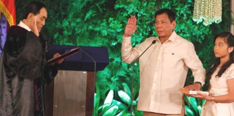 El controvertido Rodrigo Duterte se convirtió este jueves en el nuevo Presidente de Filipinas en una ceremonia sencilla en la que se defendió de las críticas recibidas por su radical visión de la lucha contra la delincuencia. "Sé que hay quien no aprueba mis métodos de lucha contra el crimen y contra la venta de drogas ilegales y la corrupción. Dicen que mis métodos son poco ortodoxos y que rayan la ilegalidad", dijo el mandatario, partidario de las ejecuciones extrajudiciales de delincuentes y narcotraficantes. "He visto como las drogas ilegales destruyen personas y familias (…) He visto como el crimen roba a los inocentes todos sus ahorros. Si se mira desde esta perspectiva, decidme que me equivoco", afirmó el político en un breve discurso tras jurar el cargo. El flamante jefe de Estado recordó a sus detractores que es abogado de profesión y que, por lo tanto conoce, los límites de la autoridad de un presidente. "Sé lo que es legal y lo que no lo es. Mi respeto por el Estado de derecho es inflexible. Vosotros ocuparos de vuestro trabajo. Yo me ocuparé del mío", zanjó el mandatario. "No fui elegido para servir los intereses de una persona, un grupo de personas o una clase. Sirvo a todo el mundo", afirmó Duterte. El acto de investidura fue mucho más sencillo que los anteriores y con poco más de 600 invitados por orden del nuevo presidente, que desde que entró en política ha buscado distanciarse de la elite política y económica del país. Duterte, que con sus 71 años es el mandatario filipino de mayor edad en ser investido, llegó al palacio presidencial de Malacañang puntualmente, a las 10:30 hora local (23.30 hora de Argentina), ataviado con un sencillo barong -una prenda típica filipina- y unos pantalones claros. Fue recibido por el mandatario saliente, Benigno Aquino (2010-16), con quien se reunió durante media hora antes del acto que marcó el traspaso de poderes. Luego, después de que Aquino abandonó Malacañang, su sucesor se trasladó a la sala Rizal, donde se escuchó el himno nacional y una breve oración llevada a cabo por representantes de las religiones católica, musulmana y de la población tribal. A las 12:00 horas local (1:00 hora de Argentina), como establece la Constitución, Duterte prometió el cargo ante el juez adjunto del Tribunal Supremo, Bienvenido Reyes, antiguo compañero de estudios, y ante la presencia de sus cuatro hijos, además de ex presidentes como Fidel Ramos (1992-98) y Joseph Estrada (1998-2001) y representantes del cuerpo diplomático. El discurso de aceptación duró unos 15 minutos y, como prometió su equipo, evitó las palabras groseras que plagan sus declaraciones públicas. Tras la jura se celebró un sencillo banquete protagonizado por productos locales, como el zumo de coco en lugar de vino, el adobo -uno de los platos filipinos por excelencia- y el durian, una popular fruta de la región y la favorita del nuevo mandatario. La particular ceremonia de investidura estuvo marcada por la ausencia de la vicepresidenta electa, Leni Robredo, de un partido distinto y que tomó posesión antes, en un acto separado por decisión del nuevo mandatario. El primer Presidente de Filipinas natural de la región sureña de Mindanao tendrá un mandato único de seis años, como establece la Constitución de 1987. Duterte consiguió más de 16,6 millones de votos en las elecciones del pasado 9 de mayo, cerca de 7 millones de papeletas más que su inmediato perseguidor, Mar Roxas, ministro del Interior saliente. El que fuera durante 22 años alcalde de Davao se ganó la confianza de los filipinos gracias a su firme promesa de luchar contra el crimen y las drogas, considerados dos de los mayores problemas del país por sus ciudadanos. El jefe de Estado ha dicho que reimplantará la pena de muerte, abolida en 2006 por la ex presidenta Gloria Macapagal Arroyo.