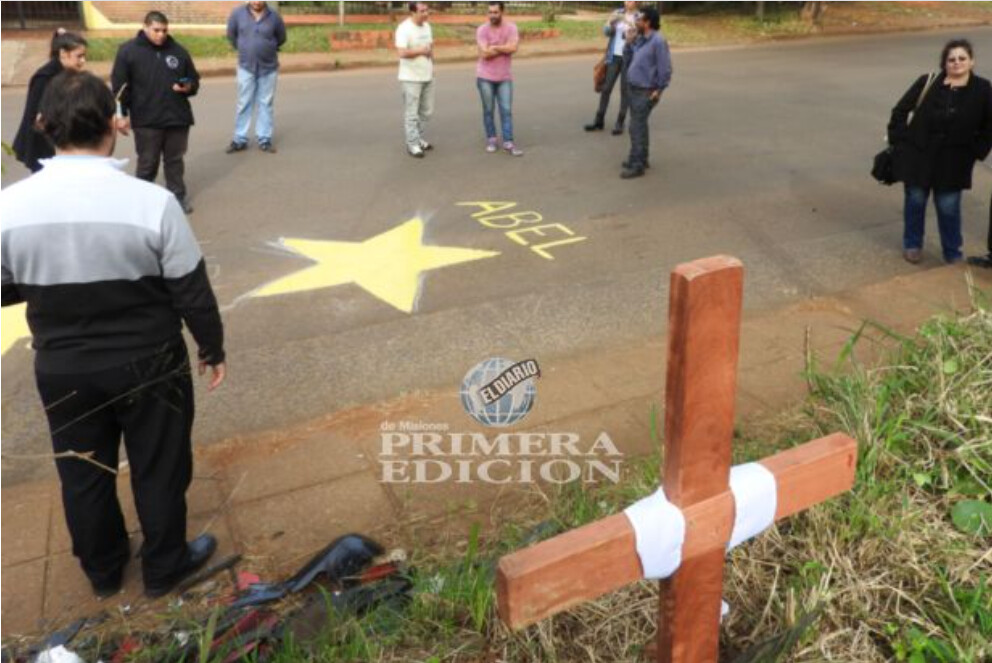 Cerca de las 10.30 de ayer más de 20 taxistas realizaron un nuevo pedido de justicia. Se concentraron sobre las mencionadas arterias y cerraron el paso al tránsito. A medida que pasaban los minutos se acercaban más familiares, amigos y colegas de las víctimas. A esa hora y frente a los escombros, una joven se arrodilló sobre el asfalto y dibujó la primera estrella. Un muchacho la ayudó y escribieron el primer nombre: Abel. Luego, dibujaron otra estrella y la llamaron Lidia.
