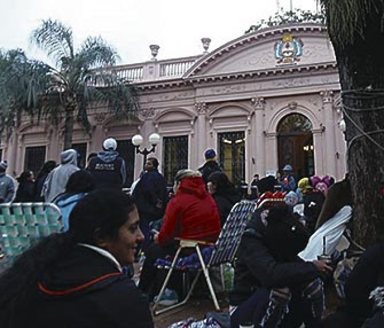 La medida se resolvió “tras haber agotado todas las instancias de diálogo” según un comunicado de la organización.El acampe se dio también en repudio “a la quita de unos 500 puestos de trabajo” y el retiro de la asistencia social, el que calificaron de un “ataque a nuestra organización”. Los acampantes aseguran que se quedarán en la plaza 9 de Julio “hasta tanto el gobernador de la provincia les acerque una respuesta”. “Llevamos semanas realizando reclamos. En medio de un agravamiento de la situación de pobreza por la inflación y la falta de trabajo, hemos sido objeto de una serie de malos tratos y maniobras, que nos han llevado a este escenario”, dice la nota entregada ayer en Casa de Gobierno.Final de obraEntre los reclamos, piden la terminación de las viviendas del barrio Gauchito Gil, presupuestadas en $237.500 cada una. La construcción arrancó en 2015 con sucesivas demoras en sus certificaciones, pero  los precios se dispararon. “Se realizó un modesto pedido de fondos para terminar las 20 viviendas y no fue tenido en cuenta” aseguraron.“A lo largo de nuestra labor hemos demostrado nuestra capacidad de respuestas realizando decenas de miles de metros de veredas y empedrados y más de 140 viviendas de material y otros trabajos” refirieron.Aseguraron también que llevan  dos meses sin cobrar  y “ni siquiera entregaron a las familias un bolsón de mercadería”, por lo que continuarán la protesta.