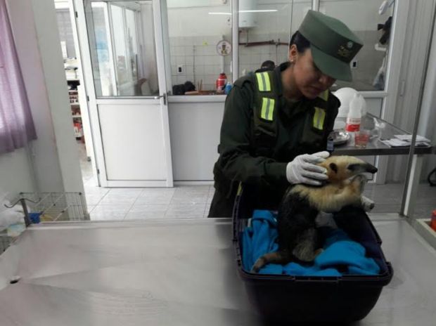 Este domingo por la mañana, personal perteneciente a la Patrulla Ambiental del Escuadrón 9 "Oberá" de Gendarmería Nacional realizaba un patrullaje por caminos secundarios con acceso a la ruta nacional 14 cuando, al llegar a la altura del Kilometro 895, en jurisdicción de Campo Viera, vecinos los alertaron sobre la presencia en la zona de un oso melero (Tamandúa Tetractyla) con aparentes dificultades para desplazarse y totalmente desorientado.Inmediatamente los gendarmes efectuaron un rastrillaje por el lugar y al cabo de unos minutos localizaron al animal, que presentaba a simple vista signos de haber estado en cautiverio (marcas de collar en el cuello y totalmente dócil y amistoso con los seres humanos).Ante el hecho, se realizó el rescate del ejemplar y se lo trasladó hasta la sede del Escuadrón, donde se dio intervención al personal del Ministerio de Ecología en Oberá.Desde allí, el oso fue trasladado hasta el parque “El Puma”, de Candelaria, donde se le brindará asistencia veterinaria para una posterior reinserción a su habitad natural.Fotos: Prensa GN