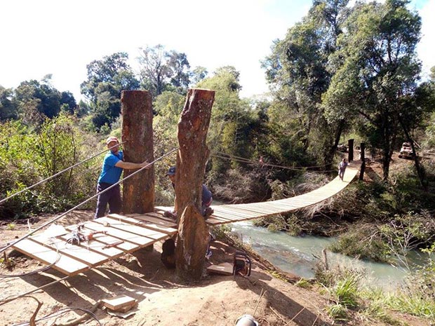 Con la colaboración de miembros de varias iglesias, un vecino de la zona construyó un puente colgante sobre el arroyo Cuña Pirú con el propósito de conectar a los integrantes de la Aldea Ñaaro Pyau (significa Nueva Esperanza) con el resto de sus paisanos. Se trata de una comunidad de seis familias, con alrededor de 35 integrantes, que quedaba aislada del resto cuando crecía el cauce y en momentos de abundantes lluvias. La idea fue del misionero Jorge Kelm, que vive con su familia en las cercanías. “Las seis familias cruzaban a través de un tronco, era muy difícil pasar para ir a la escuela, y a veces faltaban toda una semana o más. Eso fue un drama. Otro problema era transportar la mercadería. Suelen comprar harina por 25 kilos y en una ocasión al cacique, que es un hombre grande, se le cayó la bolsa al agua. Y quedaron muy tristes”, comentó Kelm a PRIMERA EDICIÓN, ilusionado por habilitar la obra.“Al ver necesidades como éstas -continuó- concluimos que había que hacer un puente. Algo que fuera lindo para el lugar, que no resultara muy caro, y surgió la idea del puente colgante con recursos propios como los troncos de cerne de anyico, que conseguimos en la comunidad”.  Suma de voluntadesKelm contó que empezaron a trabajar con recursos proporcionados por miembros de su iglesia, la Evangélica Pentecostal Misionera, pero como tiene amistades de otras denominaciones como la Bautista, los conocidos y amigos se sumaron con la colaboración. Dieron a conocer esta necesidad y una iglesia de Buenos Aires les envió 200 metros de cable de acero de 1,6 centímetros que implicaban una suma muy elevada. “El flete lo hizo Daniel Rizzolo y trajo la carga hasta acá, de manera gratuita. Jóvenes de su iglesia, Exploradores del Rey, donaron la mano de obra y vinieron a hacer los cimientos, que se emplazaron de tal manera que el agua no pueda arrastrarlos”. También lograron la ayuda de otra iglesia Bautista de Buenos Aires que mandó el dinero para materiales como piedra, arena y cemento y las tablas que se colocaron sobre el puente.PrecaucionesSegún detalló Kelm, a cada lado “está hormigoneado por debajo de la tierra por alrededor de dos metros.  Creemos que el agua no lo va a llevar porque tomamos todas esas previsiones. Las tablas son de una madera que dura a la intemperie. A medida que pasen los años, si alguna se deteriora la iremos reemplazando y manteniendo”. El puente tiene 47 metros de extremo a extremo, y está ubicado a cinco metros sobre el nivel del agua. Por estos días falta completar el resguardo del pasamanos, una especie de tejido de 1,20 metros de alto para proteger a los niños durante el cruce.Según resaltó Kelm, esta pequeña pero importante obra, permite que la comunidad “pueda salir de manera más segura y menos peligrosa, hacia la ruta provincial 7. Esto les facilita y, llueva o no, pueden pasar tranquilos, sin riesgos”. Pozo perforadoPero esta construcción no fue un hecho aislado. El mes pasado terminaron de hacer el pozo perforado de agua con el tanque y la red completa para las mismas familias, una obra que también desarrollaron con recursos de diferentes iglesias, demostrando que con escasos medios pero con mucha voluntad se pueden lograr grandes cosas y sin tanta burocracia.Siempre dispuestosHace once años que Kelm vive con su familia cerca de las aldeas guaraníes. “Estamos en esta lucha, asistiendo, viendo las necesidades y tratando de ayudar como institución, como iglesia, para darles una mejor calidad de vida. Todo lo que se refiere a la logística, a buscar posibilidades de mejorar la calidad de vida en cuanto a huertas, cría de pollos. Hacemos un trabajo integral. Somos misioneros y vivimos junto a la comunidad, linderos a la comunidad Tierra Colorada”.Explicó que tanto el puente como la provisión de agua eran las obras más urgentes pero “lo que tenemos en mente es cubrir un poco más el área de salud. Hacer un pequeño edificio para poder atenderlos. Mi esposa es enfermera y en lo que podemos colaborar, cubrimos esta área, con nuestros recursos, ad honorem. Siempre estamos dispuestos a hacer lo que haga falta”. Convencido, aseguró que Dios los llamó a dedicar “la vida a estas personas. Pensar que en la ciudad podemos tener todo, pero que en Misiones hay un pueblo que es totalmente diferente, una etnia autóctona con tantas necesidades. Por amor a los guaraníes dedicamos nuestra vida o parte de ella a servirlos, a ayudar, a tratar que su calidad de vida sea siempre mejor”. Quienes deseen conocer el puente, se encuentra a la altura del kilómetro 25 de la ruta provincial 7, a unos 800 metros de la arteria. Los que puedan colaborar, comunicarse por Facebook a Misión Guaraní Cuña Pirú o enviar un whatsapp  al (3743) 15435529.