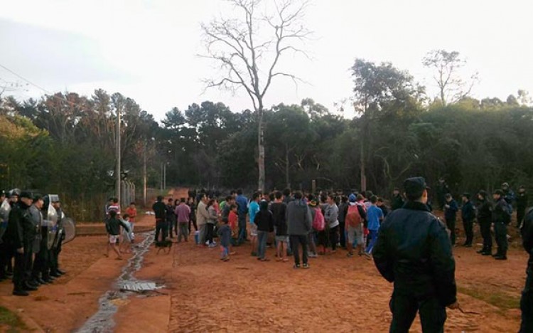 Unas treinta personas se manifestaron el martes frente al Juzgado de Instrucción 1 de esta ciudad para repudiar el desalojo de un predio usurpado un día antes en el barrio San Cayetano y la sujeción a proceso judicial de dos integrantes de la CTA, por el supuesto delito de “incitación”, consignaron fuentes del caso.Los terrenos -según pudo averiguar PRIMERA EDICIÓN- pertenecen a la Municipalidad local y están destinados a la construcción de un Salón de Usos Múltiples (SUM) y una plaza.Al momento de la usurpación -la tercera en lo que va del año-, el inmueble estaba cercado con tejido y exhibía carteles que anuncian el pronto inicio de obras.Sin embargo, esta circunstancia no impidió que, el domingo pasado, unas 85 familias ingresaran en forma irregular con intenciones de quedarse en el lugar. Entre ellas había -según estimaciones oficiales- unos 132 niños.En este contexto, el juez de Instrucción 1 de Eldorado, Roberto Horacio Saldaña, como en mayo pasado, dispuso el desalojo de la propiedad fiscal.En medio del procedimiento policial, dos dirigentes de la CTA fueron demorados y acusados de incitar el accionar de los “ocupas”.No obstante, ambos recuperaron la libertad poco después en la comisaría dependiente de la Unidad Regional III, con asiento en Eldorado.El lugar“El predio se encuentra en el barrio San Cayetano y consta, aproximadamente, de cuatro cuadras a la redonda”, consignó una fuente consultada por este Diario.Fuentes judiciales confirmaron que, con la del domingo, fue la tercera ocasión en que usurpan el inmueble municipal. En dos de ellas con el juez Saldaña de turno y la restante, con la titular del Juzgado de Instrucción 2, Nuria Allou.Tras los últimos incidentes, la Municipalidad de Eldorado se habría comprometido, al menos verbalmente, a iniciar una parte de las obras lo suficientemente significativa como para evitar futuras intrusiones. Justamente, desde el ente comunal se habría advertido del accionar de oscuros intereses que se manejarían desde las sombras para utilizar a estos actores y obtener las tierras para luego venderlas, contexto que es investigado por la Justicia.Del otro lado, en tanto, la verdad pareciera no estar enajenada de la realidad. Muchos en esas 85 familias son desocupados que viven de changas y que ya no cuentan con planes sociales; por lo que las necesidades básicas insatisfechas se multiplican.