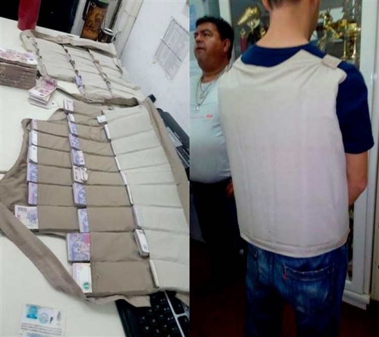 La Administración Federal de Ingresos Públicos (AFIP), a través de la Aduana, secuestró 930.000 pesos en efectivo durante un procedimiento control de rutina realizado en el Puente Internacional San Roque González de Santa Cruz, que une la Ciudad de Posadas (Argentina) con Encarnación (Paraguay). El dinero era transportado por dos ciudadanos argentinos que lo llevaban oculto en chalecos especialmente diseñados y otras prendas de vestir. Ambos pasajeros quedaron detenidos a disposición de la Justicia.Todo comenzó cuando un taxi con matrícula paraguaya llegó al control aduanero apostado en el lado argentino del puente internacional. Los agentes de la Afip iniciaron un procedimiento de rutina y notaron nerviosos a los pasajeros del vehículo, por lo que indicaron a su conductor que se dirigiera al sector de dársenas para una revisión más exhaustiva y la inspección del equipaje.Una vez allí, el personal de la Afip solicitó a los pasajeros que descendieran del taxi e iniciaron la requisa, que permitió detectar más de 930.000 pesos ocultos en bolsillos de chalecos diseñados para el traslado de efectivo; debajo de medias y calzas y en bolsillos de pantalones cargo. El efectivo que transportaban no se corresponde con lo que habían declarado.En forma inmediata se dio intervención al Juzgado Federal de Primera Instancia en lo Criminal y Correccional de Posadas, que ordenó se instruyan las actuaciones como "tentativa de contrabando de importación de divisas y presunto lavado de activos", se proceda al secuestro del dinero y la detención de ambos ciudadanos.