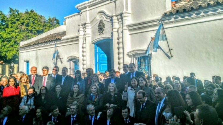 Alrededor de 150 legisladores nacionales y provinciales iniciaron este miércoles en la puerta de la Casa Histórica de Tucumán los actos oficiales  para conmemorar el Bicentenario de la Declaración de la Independencia.    Fuentes parlamentarias señalaron a NA que arribaron a la provincia norteña 22 de los 72 senadores nacionales y alrededor de 100 de los 257 diputados.   Al grupo de legisladores se sumaron el gobernador de Tucumán, Juan Manzur, y su vicegobernador, Osvaldo Jaldo, para tomarse una serie de fotos en la puerta del solar histórico.   La ceremonia fue encabezada por el mandatario provincial; la vicepresidenta, Gabriela Michetti; el presidente provisional del Senado, Federido Pinedo; y el presidente de la Cámara de Diputados, Emilio Monzó.   En el marco de los festejos por los 200 años de la Declaración de la Independencia, Pinedo le entregará una medalla a la directora de la Casa Histórica, Patricia Fernández Murga, luego de lo cual Manzur y Monzó izarán la bandera y brindarán un cóctel para agasajar a los invitados.   Después de este encuentro protocolar, los parlamentarios se trasladarán al edificio de la Legislatura Provincial donde  Monzó, Michetti y Jaldo ofrecerán una conferencia de prensa.   Finalmente, en el Teatro San Martín se celebrará una sesión especial de la Asamblea Legislativa en conmemoración del Bicentenario de la Declaración de la Independencia.  La sesión será encabezada por Pinedo, ya que Michetti se encuentra a cargo del Poder Ejecutivo por encontrarse el presidente Mauricio Macri de gira oficial en el exterior.Fuente: Noticias Argentinas
