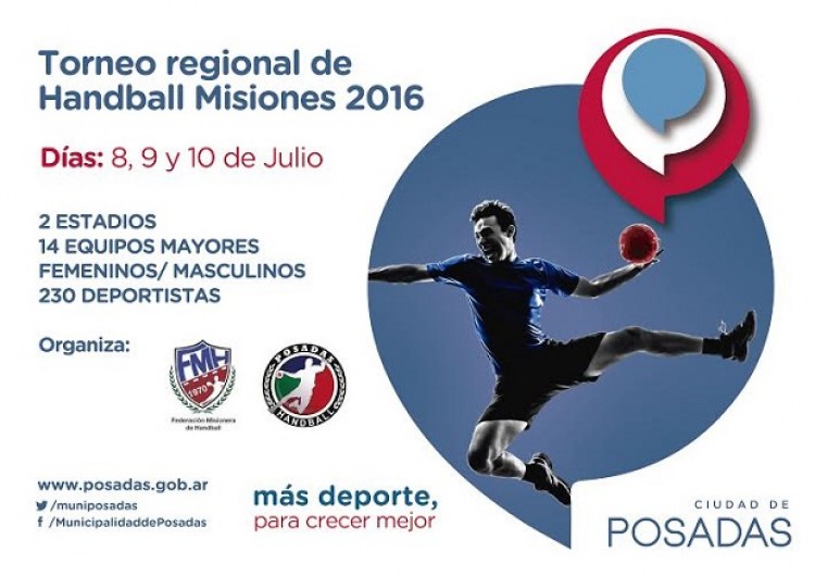 Durante tres días, del 8 al 10 de julio, habrá más de 230 deportistas que, acompañados de sus familiares y amigos, visitarán la ciudad y compartirán la pasión por este deporte.La actividad es organizada de manera conjunta entre la Municipalidad y la Federación Misionera de Handball. El director General de Deportes, Miguel Ángel González, explicó que “los encuentros corresponderán a equipos femeninos y masculinos, y comenzarán este viernes en el Cepard, mientras que el sábado se jugará en las dos sedes, cerrando la jornada con una peña y bandas en vivo en el “Finito” Gehrmann”.Por su parte, el presidente de la Federación Misionera de Handball, Jorge Ferreyra Díaz, comentó que “desde la Federación organizamos 6 fechas puntuables, siendo tres por semestre y dejamos libre el mes de julio porque la idea es que este Torneo Regional se establezca en el calendario y tenga vigencia todos los años”. En este sentido, destacó “el trabajo y esfuerzo realizado en conjunto con el municipio para la organización; hecho que potencializa la práctica de Handball en la ciudad”.El director de Deportes Náuticos, Balnearios y Costanera, Nicolás Eizmendi, sostuvo que “esperamos que Posadas se consolide como una plaza importante de este deporte. Para este primer torneo ya confirmaron varios equipos de Corrientes, Formosa, Chaco, Paraguay y estamos esperando la confirmación de Brasil”.