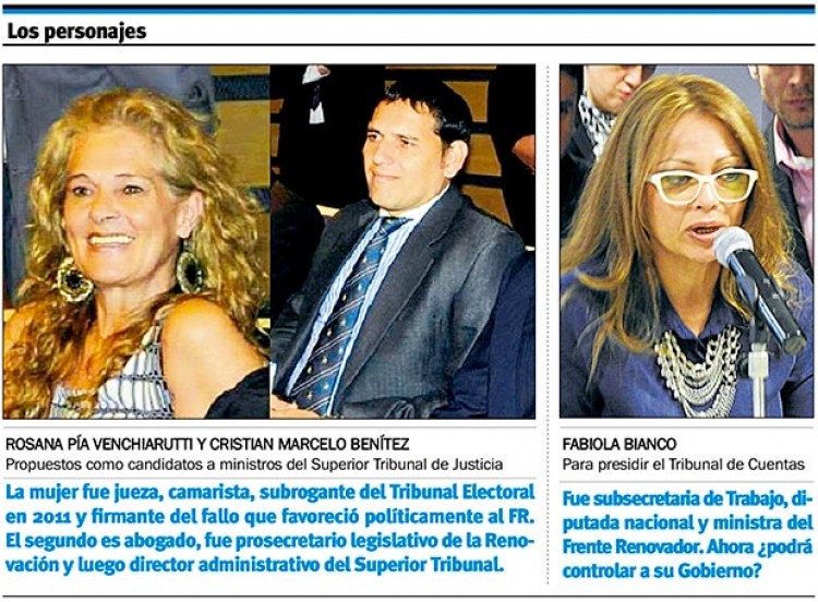 La Cámara de Representantes tiene previsto para este jueves una maratónica sesión con el tratamiento de los polémicos pliegos enviados por el Poder Ejecutivo para cubrir dos vacantes de ministro en el Superior Tribunal de Justicia (STJ), el Consejo de Educación y otro para la presidencia del Tribunal de Cuentas. Los propuestos para el máximo órgano judicial son Cristian Marcelo Benítez, quien fue prosecretario legislativo de la Legislatura y luego secretario administrativo y de Superintendencia del Poder Judicial, sin carrera judicial ni cargo anterior en la justicia. La segunda propuesta es Rossana Pía Venchiarutti, abogada y notaria, jueza y luego camarista, recordada por participar como subrogante en el 2011 del fallo que favoreció al Gobierno y no respetó un tercio de la integración de la Legislatura para las minorías.Para el Tribunal de Cuentas se propuso a una exfuncionaria renovadora con extensa carrera militando en los despachos del gobierno: la abogada Fabiola Bianco, quien fue subsecretaria de Trabajo, diputada nacional y ministra de Acción Cooperativa. Con esta extensa carrera dentro del gobierno, fue muy cuestionado el hecho que ahora se la ponga en un cargo donde deberá controlar el manejo presupuestario del propio gobierno que ella integró. Su propuesta recibió duros cuestionamientos durante la audiencia pública y se descree que tenga independencia para realizar la tarea exigida. A ellos se sumará el cargo de presidente del Consejo General de Educación, cargo para el cual fue propuesto Héctor Mauricio Maidana, actual subsecretario. Además de estos cuatro pliegos, se analizará una docena de candidatos para fiscales y jueces en distintos Juzgados de la provincia.Se prevé que la Renovación cuente con la mayoría suficiente para dar aprobación a los pliegos, tomando sus diputados y los bloques aliados que votarían acompañando.Se estima que los diputados de Cambiemos (UCR y PRO) voten en contra ya que han cuestionado previamente los nombres propuestos por considerar que no han tenido una carrera independiente del poder de turno.También han recibido crítica de los sectores profesionales, como el Colegio de Abogados, organismo que reclamó audiencia pública para los candidatos al STJ, al entender que se realizan audiencias para cargos inferiores pero no para el máximo organismo, entrando en un contrasentido.Rodrigo Bacigalupi, ex presidente del Colegio de Abogados, sostuvo que “hoy tenemos un récord nacional de sentencias del STJ impugnadas por la Corte Suprema. De diez que llegan a la corte ocho son impugnadas, invalidadas y ese defecto hace que para las 24 jurisdicciones nacionales, Misiones sea la menos respetada”.Otros pliegosSe prevé el tratamiento de los pliegos para incorporarse al Poder Judicial de Juan Manuel Hahn, para Fiscal de Cámara Civil, Comercial y Laboral de Eldorado; Juan Carlos Sandoval para Juez Civil y Comercial Nº 2 de Posadas; Fernando Marcelo Adrián Escalante, en el cargo de Juez Civil y Comercial Nº 5 de Posadas; Sebastián Mangini, en el cargo de Juez Laboral Nº 2 de Posadas; y Martín Luis Brites, como Juez de Instrucción Nº 3 de Puerto Iguazú.También se designaría a: Norma Lidia Mattofi como Juez de Familia y Violencia Familiar de Puerto Rico; Gerardo Alberto Casco para el cargo de Juez de Instrucción de San Vicente; Petronio César Piris Da Motta como Juez Civil, Comercial, Laboral, de Familia y Violencia Familiar de Comandante Andresito; Federico Vicente Barilari como Fiscal Civil, Comercial, Laboral, de Familia y Violencia Familiar de Aristóbulo del Valle; y Víctor Guillermo Beresovsky, para el cargo de Fiscal de Civil, Comercial, Laboral, de Familia y Violencia Familiar de Comandante Andresito.Por último se prevé designación de: Dora Beatriz Rieger como Defensor de Fuero Universal de Puerto Rico; María Isabel Bar como Defensor de Primera Instancia Civil y Comercial Nº 5 de Posadas; Valeria Romina Rossberg para Defensor en lo Civil, Comercial, Laboral de Familia y Violencia Familiar de Puerto Iguazú; Gabriel Alejandro León Ramos en el cargo de Defensor con competencia en lo Civil, Comercial, Laboral de Familia y Violencia Familiar de Comandante Andresito; Santiago Tomás Manso como Juez de Paz de Leandro N. Alem; y Riquelme Pablo Hulet como Juez de Paz Letrado de Aristóbulo del Valle.