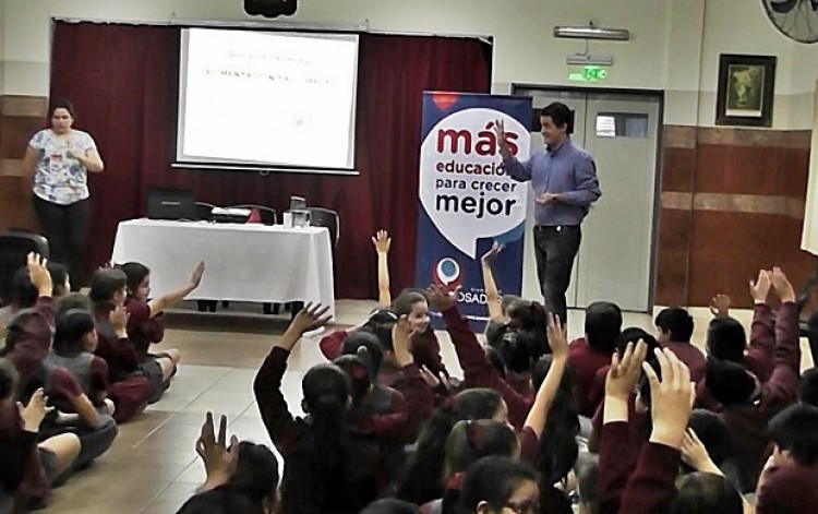En el marco de las acciones de promoción de hábitos saludables, un equipo de educadores municipal realizó esta disertación con la finalidad de explicar los beneficios de una dieta nutritiva para un crecimiento saludable.Mediante el soporte de un Power Point, se fueron exponiendo las virtudes de una alimentación sana de manera didáctica y con una buena participación de los estudiantes.Es importante destacar que esta actividad responde a la inspección y control que hizo el gobierno municipal en los kioscos de las 67 instituciones educativas que aceptaron implementar la modalidad de Kiosco Saludable.El primer paso fue el de capacitar en la temática a los responsables de estos locales que se encuentran dentro del establecimiento educativo. La actividad dirigida a los estudiantes forma parte de la segunda etapa, es decir, de la sensibilización para lograr que consuman alimentos con vitaminas y minerales para su óptimo crecimiento.El mismo encuentro se realizó el lunes en las Escuelas N° 1, Nº 821 y en el Instituto San Miguel. Continuará este miércoles en otros colegios y se retomará luego de la finalización de las vacaciones de invierno.