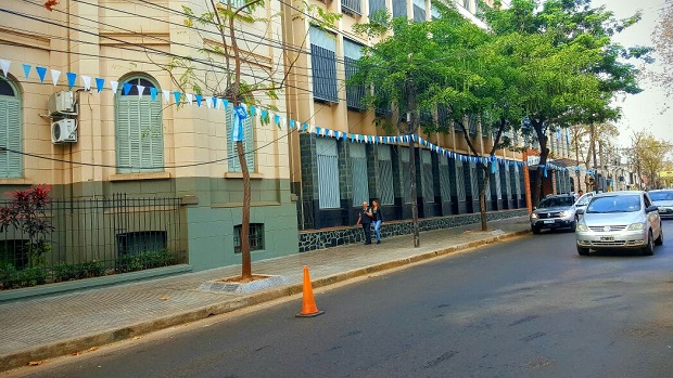 Las escuelas de Posadas aprovechan la ocasión y se visten de lujo para recibir los 200 años de la Patria. En este caso, el Colegio Santa María fue decorada para la ocasión.Docentes, padres y alumnos mostraron orgullosos la "pilcha" para la ocasión.