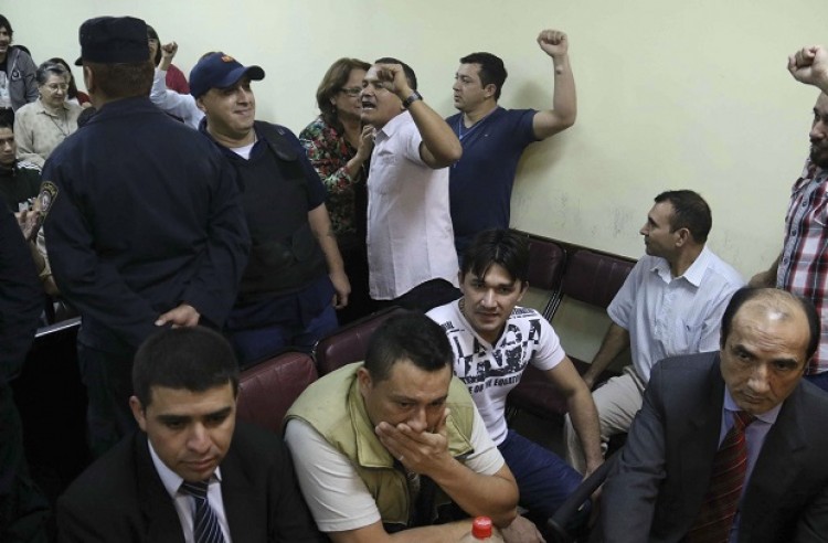 Once campesinos fueron condenados hoy a penas de entre cuatro y 30 años de cárcel por un tribunal que los encontró culpables de la llamada "masacre de Curuguaty", en la que murieron 17 personas cuando la policía intentó desalojar a un grupo de labriegos que ocupaba un terreno en litigio, en el final de un proceso marcado por la polémica y cuestionado por los organismos de derechos humanos.Las mayores penas fueron para Rubén Villalba, condenado a 30 años de cárcel por homicidio doloso, mientras que Luis Olmedo fue recibió 20 años y Néstor Castro y Arnaldo Quintana 18 años, todos ellos como coautores de homicidio.Las tres mujeres acusadas recibieron seis años de cárcel por ser consideradas cómplices de homicidio -aunque podrán mantener la prisión domiliciaria-, por ponerse en la primera línea para “aparentar” tranquilidad.Los otros cuatro acusados fueron sentenciados a cuatro años de prisión por asociación criminal e invasión de inmueble ajeno.La lectura de la sentencia se vio interrumpida varias veces por las protestas de los abogados defensores y algunos de los asistentes a la sala, en el Palacio de Justicia, en Asunción, que reclamaron la libertad de los acusados, mientras afuera cientos de personas de organizaciones sociales y gremiales y defensoras de los derechos humanos se concentró en respaldo de los campesinos.Entre otros argumentos, los defensores de los campesinos sostienen que es absurdo que ningún policía haya sido imputado y que no se tuvieran en cuenta las numerosas pruebas que presentaron a favor de sus defendidos. La llamada masacre de Curuguaty ocurrió en la mañana del 15 de junio de 2012 en un predio rural que está en litigio entre privados y el Estado, cuando policías llegaron con la orden de desalojar a campesinos que ocupaban el establecimiento. En un confuso choque armado murieron 11 campesinos y seis policías, incidente que derivó en un juicio político en tiempo récord al entonces presidente constitucional Fernando Lugo, finalmente destituido por el Congreso, dominado por la oposición. Ese golpe institucional llevó a la suspensión de Paraguay del Mercosur y de la Unasur.“Es un caso muy complejo y ante el volumen de las pruebas y que han sido discutidos y examinados legamos a la conclusión solamente leeremos la parte conclusiva”, avisó al inicio de la jornada el titular del Tribunal, Ramón Trinidad Zelaya, que explico que los fundamentos de la causa se leerán el lunes próximo.De inmediato estallaron en el recinto los gritos de "injusticia" y "libertad, libertad, a los presos por luchar", mientras el magistrado trataba de poner orden en la sala. Frustrados sus intentos y custodiado por varios policías, el tribunal dispuso un cuarto intermedio y ordenó desalojar la sala, con la amenaza de dar por leído el informe final. Como la policía no logró desalojar la sala, pasados unos 20 minutos, el tribunal volvió y la actuaria siguió con la lectura de la sentencia. El público cantó también la canción “Patria Querida”, y siguió con el grito de “nulidad”, al que se sumaron los abogados de la defensa.El caso fue de tal compleijidad que las recusaciones y presentaciones hicieron posponer el inicio del proceso en 14 oportunidades. Aún cuando el Ministerio Público nunca investigó las muertes de los labriegos y sólo se analizó la de los seis policías.El 13 de noviembre del año pasado la Corte Suprema de Justicia abrió un sumario para determinar los motivos de la dilación y el 15 diciembre del 2015, con la lectura de los alegatos, se dio inicio oficialmente al juicio que concluyó hoy.Uno de los hechos más llamativos dentro de este proceso fue sin duda que el juicio no se detuvo durante la feria judicial de enero, algo sin precedentes en la justicia paraguaya. Otro aspecto que llamó la atención y desencadenó una ola de críticas hacia la investigación del ex fiscal del caso Jalil Rachid (hoy viceministro de Seguridad) fueron las evidencias que presentó en un principio contra los acusados: linternas, cintos, analgésicos, hojas de papel con números anotados, aguja e hilo, machetes herrumbrados, cartuchos sin percutir, papel higiénico, cortauñas, perfumes, entre otros enseres de uso diario.En su defensa, Rachid dijo que “toda evidencia es importante”, y luego debió enfrentar un pedido formal de estudiantes de la Universidad Católica para que se lo destituya como docente de esa casa de estudios.Afuera del palacio de Tribunales, fuertemente custodiado por policías y personal antidisturbios, el colectivo de observadores del juicio, integrado entre otras organizaciones por la Coordinadora de Derechos Humanos de Paraguay (Codehupy) y la Federación Nacional Campesina, se concentraron junto a dirigentes y militantes de gremios, grupos sociales y de partidos políticos, entre ellos el centroizquierdista Frente Guasú.Los condenados “integran el campesinado pobre en lucha por la tierra en el Paraguay. El proceso fiscal y la actuación judicial han estado viciados de irregularidades y la acusación se hizo sin fundamentos”, señaló el grupo Somos Observadores de Curuguaty, que lamentaron que “estos ciudadanos y ciudadanas han enfrentado numerosas injusticias, orientadas a ratificar una sentencia previa y la impunidad para los verdaderos responsables de la masacre”.Un rato después de la lectura de la sentencia, decenas de personas resolvieron quedarse y ocupar la sala de audiencias del Tribunal de Justicia, hasta que los integrantes del cuerpo reciban a una comisión.Entre los ocupantes está el abogado Pablo Aguayo, defensor del campesino Villalba -condenado a 30 años de cárcel-. "Este tribunal fue recusado al comienzo de la lectura del veredicto. No hubo respuestas. Continuaron ejercitando facultades jurisdiccionales que ya no tenían", denunció el letrado.Los magistrados que integraron el tribunal se retiraron e la sala en medio de griteríos e incidentes, y el abogado Aguayo dijo que 