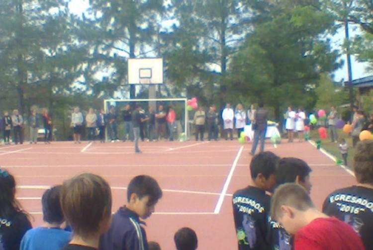 Fernando “Choco” Schmit, un exalumno de la Escuela 453 de San Vicente, decidió junto a su familia donar un nuevo playón deportivo para que los estudiantes hagan las actividades deportivas y recreativas más cómodos. La infraestructura fue inaugurada la pasada semana, en el marco de los 55 años de la institución.La escuela 453 “Sierra Grande” esta ubicada en el centro de San Vicente, sobre la avenida Libertador. Hace una semana cumplió poco más de medio siglo y toda la comunidad educativa lo celebró inaugurando la obra que donó el empresario. En el acto participaron los docentes, personal directivo, alumnos, ex alumnos, padres y autoridades del municipio.Fernando Schmit dijo que “fui un alumno muy feliz en esta escuela y tengo muy lindos recuerdos de mis maestras. Al ver en el estado que estaba el playón, le dije a mi señora que podíamos hacer un playón nuevo para los chicos que hacen educación física lo hagan en un lugar más cómodo. Yanina, mi esposa me dijo que si eso me hace feliz que lo haga. Entonces vinimos con mi padre que fue uno de los primeros egresados de esta escuela y hablamos con las maestras y nos permitieron hacerlo”.Schmit también entregó elementos deportivos para los alumnos. “Junto a amigos, comerciantes y profesionales de la ciudad decidimos entregarles algunas pelotas de vóley, fútbol y básquet. Es para que ustedes lo disfruten. Y les pido que sean buenos alumnos y disfruten de este lugar”.La Escuela 453 funciona en dos edificaciones muy antiguas. Una de ellas fue construida a mediados de la década del 70, mientras que la otra en la década de los 80. Hoy la comunidad educativa espera que las autoridades provinciales anuncien la construcción de un nuevo edificio.El reclamo viene de hace muchos años por parte de los padres y docentes. Las gestiones se vienen haciendo vía jerárquicas, pero recién el año pasado tomó participación el sector político. Luego de reuniones entre las autoridades municipales y los directivos de la escuela se decidió hacer un pedido en conjunto. El Concejo Deliberante declaró de interés municipal la necesidad de la construcción de un nuevo edificio escolar para ese establecimiento.En el mismo edificio funciona en el turno noche la Escuela para Adultos 1.227.
