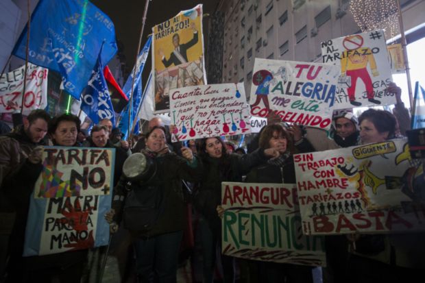 Miles de manifestantes protagonizaron este jueves por la tarde un cacerolazo en barrios porteños y ciudades de todo el país en rechazo al "tarifazo" en los servicios de agua, luz y gas, en lo que constituyó la primera protesta masiva en contra del Gobierno de Mauricio Macri.Bajo la consigna "#Ruidazo contra el aumento de tarifas", "#14J" y "#NoAlTarifazo" los usuarios publicaron mensajes y fotos a favor de la primera protesta de ese estilo desde que Macri llegó a la Casa Rosada y con carteles reclamaron la renuncia del ministro de Energía, Juan José Aranguren.Entre los participantes se encontraban comerciantes que denunciaban la imposibilidad de continuar con sus negocios por los desproporcionados aumentos en tarifas de gas, luz y agua, boletas que en algunos casos llegó a multiplicarse por diez. "No te quedes en silencio, hacé sonar tu reclamo" y "siempre pagamos los de abajo" fueron algunos de los mensajes difundidos en el espacio cibernético.A su vez, "Macri pará la mano" y "El Estado no es una empresa" fueron algunas de las consignas más populares en los carteles utilizados en la manifestación de este jueves. "Vine a manifestarme en 2001 y también vine ahora a protestar", dijo Gastón, dueño de una pyme en la localidad bonaerense de Rafael Calzada, mientras manifestaba en el microcentro porteño. Si bien la manifestación central en Capital Federal se realizó en el Obelisco, los manifestantes se concentraron en alrededor de 50 esquinas porteñas, pese a que la lluvia se hizo sentir desde las 20:00.Flores, Congreso, Palermo, Núñez, Floresta, Caballito, San Telmo, Chacarita, Villa Urquiza, Colegiales, Balvanera, Recoleta, Almagro, Villa Crespo, Boedo, Belgrano, Saavedra, Mataderos, Parque Patricios, Villa Luro, Parque Avellaneda, Parque Chas y Lugano fueron algunos de las principales puntos de manifestación en la ciudad de Buenos Aires. En Morón, Villa Insuperable, Ciudadela, La Matanza, Tandil, Mar del Plata, Moreno, Berazategui, Lomas de Zamora, Almirante Brown, Quilmes, Lanús, Ituzaingo y La Plata también se llevó a cabo el "ruidazo" y "cacerolazo".En la Quinta de Olivos, en tanto, se reunió un grupo de personas con carteles y banderas en contra de los incrementos en las tarifas. En Plaza de Mayo se congregaron unas 50 personas, lideradas por Hebe de Bonafini y la agrupación Madres de Plaza de mayo, aunque la zona se encontraba vallada para evitar el acceso a Casa de Gobierno.A nivel nacional, hubo protestas en diversas ciudades de Córdoba, La Rioja, Neuquén, Chubut, Entre Ríos, Salta, Santa Fe, San Luis, Mendoza y San Juan. Cerca de las 21:00, manifestantes de la organización social Tupac Amaru marcharon hacia el Obelisco y reclamaron también la liberación de la dirigente Milagro Sala. De la manifestación participaron la Asociación de Defensa de Usuarios y Consumidores (ADDUC), Consumidores Libres, el movimiento en Defensa de los Derechos de los Consumidores, Usuarios y del Medio Ambiente (MODECUMA), la Unión de Usuarios y Consumidores (UUC), la Asociación de Consumidores Libres (ACL), la Asociación de Defensa de usuarios y Consumidores (DEUCO) y el Instituto de Defensa del Usuario y Consumidor (Inducam). Fuente y Fotos: Noticias Argentinas