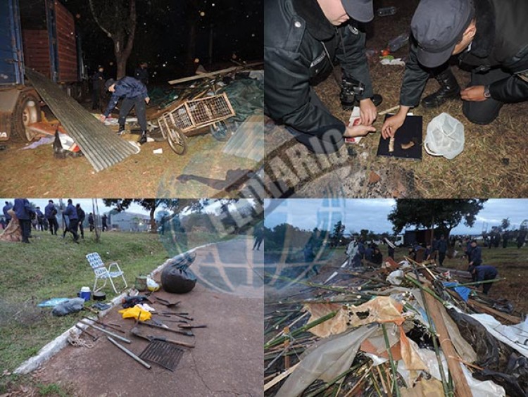 El operativo de desalojo comenzó cerca de las 4 de la madrugada de este sábado encabezado por el juez Carlos Giménez, quien había ordenado la medida hace algunos días, el jefe de Policía Manuel Céspedes y el subjefe comisario general José Mazur.Participaron unos 500 efectivos, entre oficiales, suboficiales, agentes e incluso de cadetes de la Escuela de Policía. Grupos de Operaciones Especiales, Infantería, Brigada de Canes y Policía Montada, además de la Dirección General de Investigaciones.En el procedimiento fueron detenidas 28 personas (entre ellas algunos menores de edad) y se procedió al secuestro de las precarias estructuras que estaban armando para resguardarse mientras durara la ocupación del lugar, además de palas, machetes, cuchillos, herramientas varias, envases de bebidas alcohólicas, un arma calibre 22mm y 150 gramos de marihuana, lo que fue confirmado por Toxicomanía.Tanto en el predio como en los alrededores hubo incidentes entres los usurpadores y las fuerzas de seguridad, con heridos de ambas partes y siete patrullas dañadas. Los elementos incautados serán llevados como medios de prueba ante la Justicias, inciándose las correspondientes causas por daños, lesiones, resistencia a la autoridad, tenencia de estupefacientes y tenencia ilegal de arma de fuego. AMPLIAREMOS