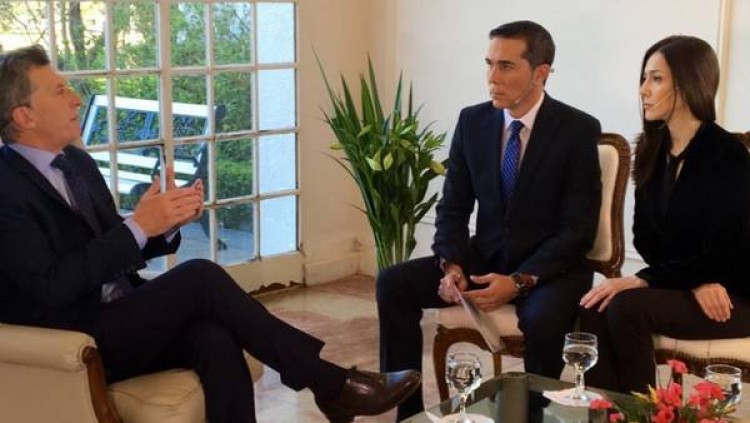 El presidente Mauricio Macri aseguró este martes que la economía argentina volverá a crecer el año que viene y señaló que ese incremento del producto bruto interno se ubicará entre un 3 y un 3,5 por ciento.“Para el año que viene la Argentina va a volver a crecer después de cinco años”, auguró el presidente durante una entrevista que concedió este martes al canal Telefe y precisó que “quiero ser prudente, entre tres y tres y medio firmo”“Empezamos una etapa de la verdad y el sinceramiento, y este sinceramiento fiscal es el último”. dijo con respecto al blanqueo de capitales y agregó: “Aquellos que creían que tenían que protegerse de un Estado que los iba a estafar, que entiendan que ahora tienen un Estado que los va a proteger y también a los derechos de la gente”.Sobre la situación judicial de la ex presidente Cristina Fernández de Kirchner, Macri se posicionó señalando que “no imagino ni pienso a la ex presidenta presa porque no es un tema mío, yo no opero como ellos que se enfermaron de poder y manipularon todo”.En relación al empleo, el presidente insistió en que “mi preocupación es cuidar los trabajos que tenemos y generar nuevos. Hace cinco años que la Argentina no genera empleo, ahora está desparejo: hay sectores que incorporan empleos como el campo, la minería sustentable, energía y hay otros que les está costando más”.La entrevista con los conductores del noticiero de Telefé, Cristina Pérez y Rodolfo Barili, se concretó en la Quinta de Olivos mediante la gestión del vocero presidencial, Iván Pavlovsky.“El fútbol argentino está pidiendo un cambio y estamos evaluando qué está pidiendo”, definió Macri luego de aceptar que durante la campaña presidencial aseguró la gratuidad del fútbol y tras anunciar hoy que se rescindía el contrato del Fútbol para Todos, aun cuando se buscará mantener la actividad en la televisión abierta.El tema de su patrimonio y su inclusión en los Panamá Papers conformaron otro de los ejes de la entrevista y en ese sentido dijo que “yo predico con el ejemplo: yo traje el mío y la mayoría (de sus ministros) ya lo está haciendo y espero que la mayoría de los argentinos que tienen dinero afuera lo traigan” y sobre la cuenta off shore mencionó que está "requete probado" que es "absolutamente" inocente.En el tramo más político de la charla, consultado sobre un posible segundo mandato, el presidente evaluó como “una locura” hablar de “un segundo mandato cuando hace tan poco que estamos gobernando”.Con respecto a las tarifas de energía reconoció dificultades en la implementación de los aumentos pero analizó que “culpa de este sistema del anterior gobierno de regalar la energía la gente rica gasta 20 veces más (energía) que la gente de menores recursos y eso es una inmoralidad”.“Tomamos muchas medidas sociales como ampliar la Asignación Universal por Hijo, la Ley para las Pymes y la normativa que favorece a las autopartes. Favorecimos a los sectores más postergados, por eso lanzamos el plan Belgrano para hacer obras en el Norte del País”, agregó.Sobre el final del encuentro con los periodistas, garantizó que la obra pública en su gobierno será transparente.“Conozco a todos los constructores, son los mismos que trabajaron en la obra pública en la ciudad de Buenos Aires en los 8 años de más obras en los últimos 30. Fueron contratados en licitaciones transparentes, publicadas en internet, las empezaron y terminaron en las fechas que correspondían, con cero corrupción y absoluta transparencia”, finalizó.Fuente: Agencia de Noticias Télam