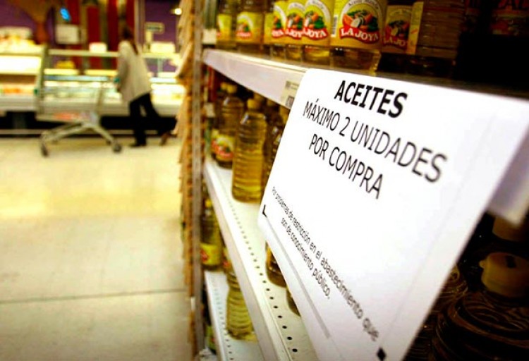 Los consumidores arrasaron las góndolas de aceite en los últimos días, luego de la suba del 25% registrada la semana pasada y la posible suba que se anuncia para el mes de agosto.Por esta razón los supermercados e hipermercados han limitado la venta a dos botellas por persona como máximo. Otros negocios, con actitud inescrupulosa, han guardado el stock para sacarlo recién después del próximo aumento y vender a precio nuevo (más caro) lo que compraron antes de la suba.Nelson Lukoski, propietario de un supermercado, explicó a PRIMERA EDICIÓN que “subió 25% aproximadamente, no el 90% como se anunció. No creo que suba mucho más. Se está limitando la venta porque la gente arrasó la semana pasada”, explicó.Ismael Ortigoza, de la Cooperativa de Almaceneros de Posadas también confirmó la suba en el precio y señaló estar “al tanto de la posibilidad de un nuevo incremento, pero no creo que suba”, dijo.No se registran faltantes porque el producto no escasea, pero la idea de los comercios es que la gente no lleve en grandes cantidades para evitar reventa.Días atrás se conoció que el Gobierno nacional eliminará a partir de agosto un fideicomiso privado, creado en 2008, que subsidiaba el valor interno del producto. Ante esta situación, los precios aumentarían entre un 25 y 30 por ciento. Actualmente, el mezcla se comercializa en entre 25 y 30 pesos y el de Girasol a partir de los 30 pesos.Alberto Guida, presidente de la Cámara Argentina de Distribuidores y Autoservicios Mayoristas (Cadam), que agrupa a los mayoristas de alimentos, bebidas y productos de higiene y tocador, dijo que “por el momento no hay faltantes de aceite. Recibimos, de parte de la industria productora, una cuotificación fija de mercadería desde hace cerca de cinco años. Es algo histórico. Estamos mal abastecidos. No se tiene en cuenta que crece la población”, explicó.