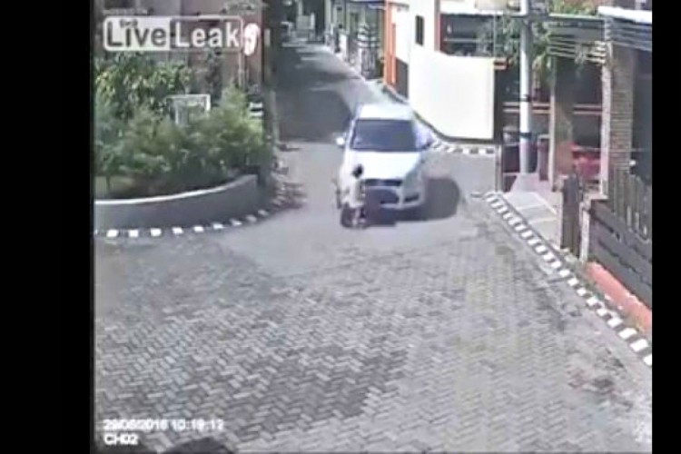 El hecho ocurrió en Indonesia y las imágenes fueron grabadas por una cámara de seguridad del vecindario y el video fue posteriormente subido a YouTube donde no tardó  en hacerse viral.En la impactante grabación se puede observar cómo la niña iba  conduciendo  su ‘scooter’ y de repente una conductora arrolla a la pequeña. Rápidamente, el auto se detuvo y la conductora se bajó para verificar a la niña, pero milagrosamente la niña había resultado ilesa.