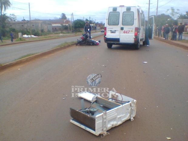 El llamativo episodio se registró alrededor de las 14:15 de este miércoles sobre la avenida Alicia Moreau de Justo (ex ruta 213). Al parecer, una de las motos involucradas tiraba de un tráiler que se desenganchó en un momento dado, provocando que otra moto Zanella de 110 cc intentara desviar al acoplado y ahí colisionara con una tercera, una Honda Storm 150 cc. Curiosamente, la moto que llevaba el tráiler, así como la carga de este último -un acondicionador de aire y un televisor-, quedaron abandonados en el lugar por su conductor, quien huyó del lugar. Los otros dos motociclistas -un hombre de 42 años identificado como Marcos V. y una mujer de 31 y de nombre Cintia G.- resultaron heridos y fueron trasladados al hospital Ramón Madariaga.En el lugar actuó personal de la Policía Científica y de la comisaría 18ª.Fotos: M. Fedorischak