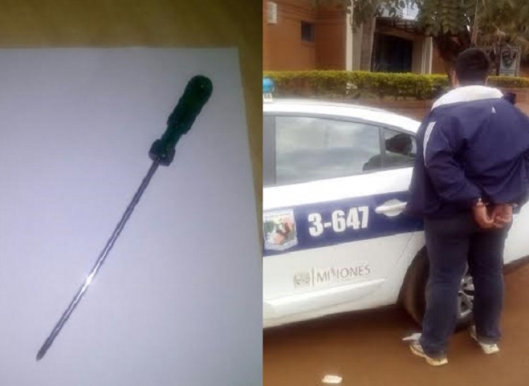Personal de la División Comando Radioeléctrico zona Oeste procedió a la detención de Rolando K. (25) y al secuestro de un destornillador con el cual intimidaba a los transeúntes de la avenida Chacabuco.Antes de ser reducido, intento herir a unos de los efectivos policiales en el momento del procedimiento.El hecho se registró aproximadamente a las 13:00 de este miércoles.El detenido fue trasladado a la Comisaria 13ª, donde se pudo averiguar que el joven se hallaba en libertad condicional.