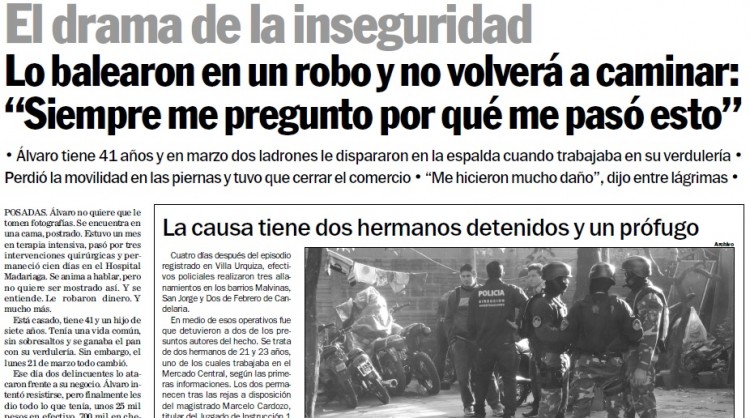 En las últimas horas, la Justicia dictó la prisión preventiva para dos hermanos que <a href="http://www.primeraedicion.com.ar/nota/225776/lo-balearon-en-un-robo-y-no-volvera-a-caminar.html">asaltaron y dispararon por la espalda a un comerciante que por ello perdió la movilidad en los miembros inferiores</a>, momento desde el cual vive una verdadera pesadilla.Se trata de los hermanos Villalonga, Elvis (21) y Matías (23), quienes fueron imputados por el delito de “tentativa de homicidio calificado”. Es que para los investigadores judiciales, los acusados le dispararon a la víctima con el fin de “asegurar” el resultado del asalto perpetrado el lunes 21 de marzo, del cual escaparon con unos 25 mil pesos en efectivo, 700 mil en cheques y vales de combustible por otros 10 mil.La resolución fue adoptada por el Juzgado de Instrucción 1 de Posadas, a cargo del magistrado Marcelo Cardozo, quien consideró suficientes las pruebas recolectadas hasta el momento para acusar formalmente a ambos.Una madrugada de terror El lunes 21 de marzo a las 00.30 los dos ladrones armados irrumpieron en el negocio de Álvaro, de 41 años, una verdulería ubicada en la calle Florencio Sánchez, entre avenida Uruguay y Herrera.Lo intimidaron y le exigieron la entrega de dinero. El protagonista de la historia contó en exclusiva a PRIMERA EDICIÓN que intentó resistirse, pero finalmente decidió entregarlo todo. Ni siquiera eso lo salvó del despiadado ataque a balazos.“Bajé de la camioneta para ir al galpón y aparecieron los dos ladrones. Cuando los vi, fue como ver al diablo. Tenían pasamontañas, lentes negros, y una pistola calibre 22. Forcejeé con uno de ellos, pero al final les entregué todo el dinero. Ni hablaron, sólo querían la plata. Pero después, al darme vuelta para volver hasta la camioneta, me dieron dos tiros por la espalda”, recordó Álvaro, que quedó tendido en el suelo sobre un charco de sangre mientras los forajidos escapaban en un automóvil cuya descripción fue aportada por un vecino.El comerciante vivió una verdadera pesadilla. Sin embargo, sacó fuerzas de donde ya no le quedaban para buscar ayuda. “Me arrastré 18 metros, desde el galpón hasta el portón, para pedir auxilio. Ahí salieron los vecinos y uno de ellos me dijo que habían visto el auto y que el robo no era una casualidad. Después de eso no recuerdo nada más”.Inteligencia previaEl viernes 25 de marzo un dato llevó a los investigadores de la Policía provincial hasta Candelaria, donde apresaron a los hermanos Villalonga, uno de los cuales trabajaba en el Mercado?Central. Por eso es que los detectives apuntan a que la víctima fue “marcada” anteriormente. Un tercer delincuente que habría actuado como apoyo de los dos arrestados permanece prófugo y su paradero es, por ahora, un misterio para los investigadores.De la recolección de pruebas, pericias técnicas y testimonios de testigos es que Cardozo y su equipo de trabajo pudo recabar elementos suficientes para imputar formalmente a los hermanos, que fueron notificados horas atrás.Ante esta situación, ambos permanecerán tras las rejas en una unidad del Servicio Penitenciario Provincial donde aguardarán por la realización del juicio oral y público. Allí tendrán la oportunidad de brindar su versión de los hechos por los que son acusados.