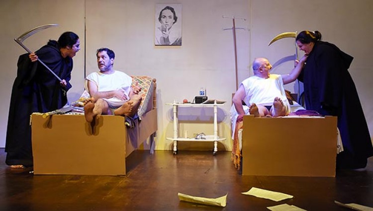 La comedia se desarrolla en un hospital cuando las muertes de Octavio (Adrián Vázquez) y de Ernesto (Anibal Bertoni) vienen por ellos. Ante la presencia de las parcas (Susy Fernández y Soledad Galván) intentarán burlarlas en un constante ritmo de hilarantes desencuentros, apuestas absurdas e intercambios de favores intentando convencerlas para que les dejen un tiempo más sobre la tierra y no bajo ella."Son dos moribundos, uno ha sufrido un accidente automovilístico y otro tiene tres válvulas colocadas en el corazón. Entonces aparecen las muertes que son una especie de delibery y en la oscuridad de la noche se confunden de personas. Entonces es ahí que comienza una especie de estrategia entre ellos, cómo hacer pasa zafar de la muerte. Llega un momento en donde las muertes se encuentran discutiendo, entonces así las personas le sugieren una partida de truco, mientras se define quién va con quién", explicó el director de la obra Buki Rosa en una charla con PRIMERA EDICIÓN.Destacó que es importante el trabajo actoral de los cuatro actores, ya que requiere de mucho trabajo corporal. Sobre la obra destaca que todo se centra en esa partida de truco, donde se pone en escena una pregunta por una sensación. "Llega un momento dónde se juega la partida final y la pregunta es ‘si hay vida después de la muerte’. A lo que la respuesta es positiva. Es donde a su vez se pone en tela de juicio si se puede salvar de la muerte, y allí es donde el planteo lleva a ese cambio necesario para todos", destacó.