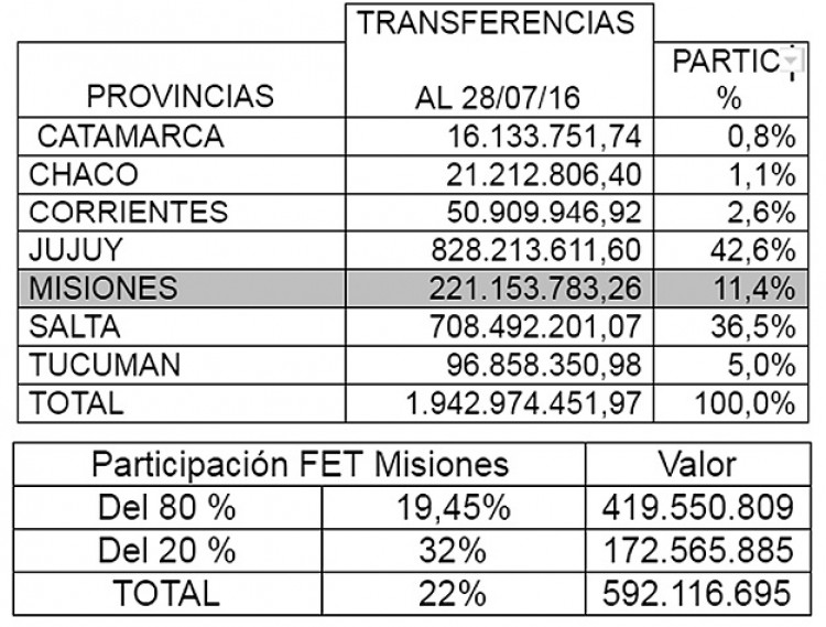 Denuncian que la Nación discrimina a Misiones en el reparto del FET