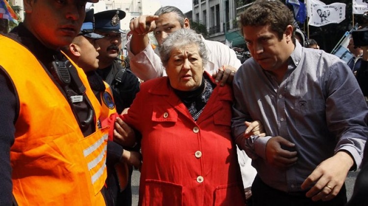 El juez federal Marcelo Martínez de Giorgi ordenó este jueves por la tarde la detención de la presidenta de Madres de Plaza de Mayo, Hebe de Bonafini, luego de que no se presentara a declarar en la causa por el desvío de fondos del programa "Sueños Compartidos". Además, le prohibió salir del país.Así lo confirmaron a NA fuentes judiciales, las que precisaron que el magistrado declaró "en rebeldía" a la referente de derechos humanos.El magistrado también comunicó su decisión a la Dirección de Migraciones, imponiendo la prohibición a Bonafini para viajar al exterior.Bonafini, por su parte, se encontraba esta tarde en la Plaza de Mayo para encabezar la tradicional ronda de los jueves, acompañada por varios dirigentes políticos, entre ellos el líder de Nuevo Encuentro, Martín Sabbatella, el secretario de la CTA de los Trabajadores, Hugo Yasky, el dirigente docente Roberto Baradel, entre otros.Poco antes de su traslado, efectivos policiales con una supuesta orden de allanamiento habían intentado esta tarde impedir la salida de Bonafini desde su asociación para realizar la habitual ronda de los jueves frente a la Casa Rosada.Un cordón policial trató de evitar la partida de la combi que trasladaba a Bonafini y a sus colegas desde la asociación hacia la Plaza de Mayo, pero el vehículo logró esquivar el operativo transitando por la vereda.El incidente se produjo después de que Bonafini se negara por segunda vez a concurrir al juzgado federal que encabeza Martínez de Giorgi para prestar declaración en el marco de la causa Sueños Compartidos.El tumulto con los uniformados se desencadenó frente a la asociación que lidera Bonafini, en Hipólito Yrigoyen 1.584 en la zona del Congreso, luego de que una autoridad policial se presentara en el lugar alegando que tenía una orden de allanamiento, aunque ese operativo finalmente no se concretó.Fuente: Noticias Argentinas