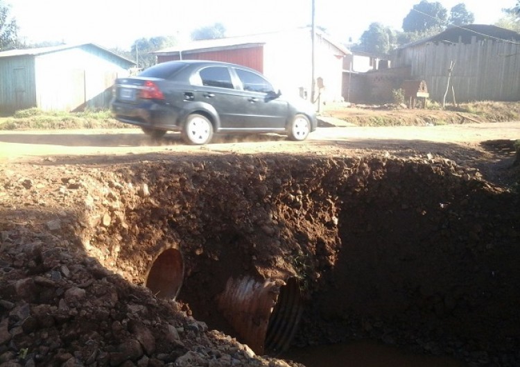 La calle Lautaro de esta ciudad se erosiona cada vez que llueve muy fuerte y el agua corre y desde el municipio rellenan con toscas, pero no hacen el muro de contención para la tierra. Los vecinos piden que se arregle porque puede causar accidentes.La arteria atraviesa varios barrios y es muy utilizado para sortear el centro de la ciudad. Su condición es transitable, pero en el cruce con el arroyito que atraviesa el barrio Gauchito Gil no tiene muro de contención para la tierra y la lluvia provoca erosión.Las fuertes lluvias que caen en la ciudad llevan mucha agua y el arroyo que la atraviesa es el drenaje natural. El curso de agua pasa por dos tubos por debajo de la calle, pero muchas veces se desborda y genera erosión en la tosca. Los vecinos aseguran que la erosión es permanente y que se quejan a la Municipalidad porque el agua va comiendo la calle por falta de un muro de contención de la tierra. Hace menos de tres meses, prácticamente la mitad de la calle se había derrumbado. Mediante el reclamo, el Municipio reparó la calle colocando tosca.Luego de la reparación la calle quedó en buenas condiciones para el tránsito, sin embargo con las intensas lluvias el relleno se va escurriendo. En pocos días la erosión llegó hasta donde se marcan las huellas de los automóviles que pasan por la calle Lautaro. Los vecinos piden que la reparación sea algo definitivo y que se haga un muro de contención en la cabecera de la alcantarilla.La preocupación es que muchos autos tuvieron accidentes de distintas magnitudes en ese cruce del arroyo y la calle Lautaro. Algunos vehículos cayeron en el curso de agua que está a casi dos metros por debajo de la arteria. Además hay mucha gente que no es del lugar y no conoce la situación del camino y pueden tener algún siniestro. Por otro lado, a la preocupación se suma que no hay alumbrado público sobre esa calle y por las noche el tránsito de autos, motos, bicicletas y peatones son muy fluidos. Este curso de agua no reviste mayores consecuencias los días normales, sin embargo cuando llueve mucho su caudal llega a aumentar hasta en diez veces, cuentan los vecinos, según la cantidad de agua que cae. Recibe agua de una cuarta parte de la ciudad de San Vicente. Hay casos de accidentes fatales sobre ese curso de agua por esa razón.