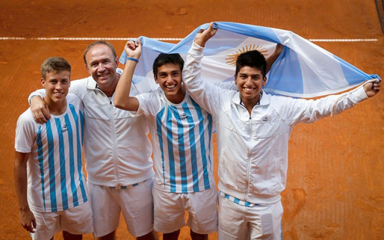 Burruchaga, 30 años después que su padre convirtió el gol del triunfo de la Selección en el Mundial de México 1986, le dio el primer punto al conjunto albiceleste al derrotar a Bohua Dong por 6-0 y 6-1, mientras que en el segundo juego, De La Fuente superó a Chaokete Buyun por 6-2 y 6-1. Gabriel Mamani fue el otro integrante del equipo albiceleste, que volvió a ganar el título mundial de la categoría tras 20 años, cuando David Nalbandian, Guillermo Coria y Antonio Pastorino lo lograron en Japón.Daniel Orsanic, capitán del equipo argentino de Copa Davis y director de Desarrollo de la AAT, valoró lo realizado por el combinado nacional, que significa "un logro muy importante en lo deportivo"."Es un triunfo histórico por la cantidad de años que hacía que Argentina no ganaba. Es un lindo triunfo del tenis argentino", celebró Orsanic desde Río de Janeiro, donde encabeza al equipo argentino de tenis en los Juegos Olímpicos.Los jóvenes argentinos, capitaneados por Jorge Etchart, dieron una vuelta olímpica en la cancha para festejar, acompañados por un eufórico Jorge Burruchaga, vestido con la  campera oficial de celeste y blanca del equipo.Durante el torneo, el equipo albiceleste superó a Tailandia (3-0), Túnez (3-0) y el local República Checa (2-1) en la etapa de grupos, mientras que en semis venció a Corea."¿Cómo viví la final? Tranquilo, confiado, porque noté muy bien a Román y a todos los chicos, al capitán. Les había tocado una zona dura, contra los checos, que eran los locales y grandes candidatos. Se sabía que los chicos nuestros eran importantes, pero la experiencia de competir con los mejores del mundo y en Europa era nueva", comentó el hombre que se nombra para sumarse al cuerpo técnico del seleccionado de fútbol que lidera Edgardo Bauza. "Fue emocionante ver el día a día de los chicos. El torneo me sorprendió; es espectacular. Verlo a Román disfrutar, convivir con sus compañeros y con gente de otros lados, pese al impedimento del idioma, fue grandioso. Además,  todo tuvo un final feliz, así que estoy recontra contento. Seguramente este Mundial habrá sido un torneo significativo para muchos tenistas y ojalá que lo sea para ellos también", agregó Jorge Burruchaga  en declaraciones publicadas por el portal de La Nación.Y concluyó: "Tengo un sentimiento de alegría espectacular. Es una satisfacción enorme por Román, por su sueño de llegar algún día a ser profesional o, de jugar y ganar un Grand Slam. Este es un primer gran paso que da en su carrera, lo hizo en equipo y sin dudas lo alimenta de energía y ganas para ir transitando este camino difícil".Fuente: Agencia de Noticias AFP/NA