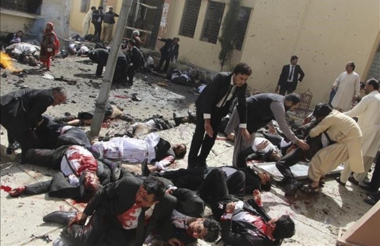 Al menos 93 muertos y 58 heridos dejó un atentado suicida con bombas y un tiroteo, en un hospital de Quetta, en el oeste de Pakistán, lugar al que poco antes trasladaron el cuerpo sin vida de un prominente abogado asesinado.El ministro de salud de Baluchistán confirmó que en el atentado murieron 93 personas. La televisión local en lengua urdu ARY News detalló que entre los asesinados había 25 abogados y dos periodistas, informó la agencia de noticias Xin Hua.Entre los juristas se encuentra, Bilal Anwar Kasi, presidente de la Asociación de Abogados de Baluchistán. Kasi murió por disparos contra su vehículo de un grupo de hombres sin identificar, alrededor de las 9 (0, hora en Argentina)en el barrio de Manno Jan, dijo el portavoz de la Policía provincial, Ghulam Akbar, según despachos de Xin Hua y EFE.Casi una hora más tarde del arribo al Hospital Civil de Quetta del cadáver de Kasi, ocurrió "una fuerte explosión" en el centro asistencial, donde se encontraban presentes un gran número de abogados, que habían ido a retirar sus restos.Además de la deflagración sucedió un tiroteo entre un grupo sin identificar y agentes de Policía.El jefe de Gobierno de Baluchistán, Sanaullah Zehri, declaró al canal de televisión Geo que se trata de un ataque suicida "planeado", que contaba que por el asesinato del abogado ocurriría la llegada de los letrados al hospital."Sabían que dispararían al abogado y que otros abogados irían al hospital. El suicida explotó las bombas que portaba cuando los abogados fueron al hospital", dijo Zehri.El mandatario indicó que desconocen quién está detrás del ataque y subrayó que los grupos insurgentes se están centrando en objetivos "blandos".Entre las víctimas mortales y los heridos se encuentran varios abogados y periodistas que fueron a cubrir el asesinato de Kasi, indicó el periódico The Express Tribune.Tras la explosión declararon el estado de emergencia en todos los hospitales de Quetta.Un escuadrón antiexplosivos explicó que el atentado fue obra de un suicida, que, estimaron los expertos, escondía entre 8 y 10 kg de explosivos en su chaqueta. Agregó que encontraron miembros del autor del atentado, que serán analizados en laboratorios forenses.Ningún grupo se proclamó responsable hasta el momento.El primer ministro pakistaní, Nawaz Sharif, condenó el ataque y se comprometió a extirpar del país a los grupos terroristas del país. El gobierno local de Baluchistán anunció un duelo de tres días, durante el cual las banderas estarán a media asta en toda la provincia.Los abogados de Baluchistán y del puerto de Karachi no trabajaron hoy, y la asociación nacional condenó el atentado, además de sumarse al duelo de tres díasFuente: Agencia de Noticias TélamVEA EL MOMENTO EXACTO DE LA EXPLOSIÓN HACIENDO <a href="http://www.liveleak.com/view?i=2ba_1470649626">CLICK AQUÍ</a>