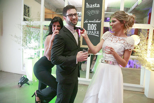 Ellas se presentaron con vestidos elegantes y zapatos altos, ellos de saco y corbata. Todos puntuales, tal como lo había pedido la organización. Así llegaron los “invitados” a la primera Falsa Boda en esta ciudad. Cerca de 300 personas se sumaron a esta propuesta que debutó el sábado a la noche en nuestra provincia pero que ya se convirtió en tendencia en otras ciudades del país y del mundo.La consigna fue precisa: muchas ganas de pasarla bien y de disfrutar como si estuvieran en el “casamiento” de algún amigo o familiar. La velada parodió todos los rituales del casamiento y se desarrolló con mucho color, fuegos artificiales, música, tragos, bandas en vivo y acróbatas.Así, varios grupos de amigos bailaron hasta pasadas las 5, festejando junto a los falsos novios, interpretados por Bruno y Sofía, una pareja de actores que fueron seleccionados durante un casting realizado un mes atrás.Antes de la fiesta, se desarrolló el ritual típico del matrimonio pero, con una vuelta de rosca por parte de los actores que interpretaron a la falsa pareja. Sin embargo la escena más novelesca la realizaron los padrinos de los novios, cuando uno de ellos se arrodilló delante de la madrina y le propuso matrimonio. De este modo, Posadas celebró, en una sola velada, dos falsas bodas.Después, las chicas pelearon por agarrar el ramo de la novia. Lo sorprendente fue cuando lo atrapó un chico que salió sonriendo con el manojo de flores ante la mirada desafiante de las mujeres.Después siguió el cotillón de pelucas, gorros y gafas gigantes, un carnaval carioca, trencito y la clásica torta. "Nosotros llegamos puntuales como indicaba la invitación. Nos pareció una propuesta fuera de lo común y por eso nos gusta. Esperamos otra Falsa Boda, hasta me animo a ser la novia”, contó Laura a PRIMERA EDICIÓN. La joven de 28 años llegó con otras tres amigas. Tanto la barra, como la ambientación del salón, música y hasta el vestido de la novia estuvieron en manos de profesionales posadeños que pensaron en cada detalle.Finalmente, las luces se apagaron cerca del amanecer en el salón de la costanera, lugar elegido para la primera Falsa Boda, con la promesa de no ser la última.Fotos: Gentileza Fotografías Suan