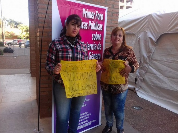 Dentro de estos puntos, se incluyó la demanda de las trabajadoras de salud llamadas Promotoras de Salud, que organizadas en la Asociación de Trabajadores del Estado (ATE) vienen llevando adelante una lucha por sus derechos laborales y denunciando la violencia de género y la discriminación a las que las somete el Estado Provincial. “Reconocimiento laboral a las promotoras de salud y a las promotoras contra la violencia de género del Progem, con salarios dignos acorde a sus funciones” expresa el documento.Conclusiones generales primer módulo foro de políticas públicas sobre violencia de género:- Elaboración de un protocolo, que fije las pautas básicas a seguir ante un caso de violencia de género, al que deben ajustarse los organismos competentes.- Creación de Casas de refugio o albergue, utilizados como centro de atención para las víctimas de violencia de género, con la provisión de recursos humanos capacitados.- Capacitación a todos los agentes municipales y provinciales vinculados con la temática, por medio de talleres o seminarios sobre derechos humanos y violencia de género, por ejemplo, agentes de seguridad, los agentes del poder judicial, los agentes de salud, para visibilizar los casos de violencia que son naturalizados. Agregar al currículo de agente y oficiales, formación en derechos humanos y legislación de género, así como a todas las fuerzas de seguridad.- Capacitación en perspectiva de Género a los docentes nivel primario secundario, en forma obligatoria, por ejemplo, por medio de talleres sobre los derechos existentes pen perspectiva de Género; brindando herramientas eficaces que sirvan a la formación de sus alumnos. Destitución y juicio académico al personal docente y no docentes de que ejerzan funciones académicas, que vulneren, sostengan o reproduzcan violencia de género, así como en diversidad sexual.- Formación y sensibilización de sindicatos y centrales de trabajadores sobre violencia de género y diversidad sexual.- Reconocimiento laboral a las promotoras de salud y a las promotoras contra la violencia de género del Progem, con salarios dignos acorde a sus funciones, y a fin de que sean ellas las que acompañen a las víctimas a los juzgados y comisarías.- Admisión de denuncia en forma indistinta, en todas las comisarias, no solo en las comisarías de la mujer; por parte de la víctima o de un tercero. Facilitar el acceso a las comisarías de todas las localidades de la Provincia, exigiendo la imparcialidad en la toma denuncias.- Asistencia domiciliaria ante una denuncia de Violencia, con equipo multidisciplinaria gratuito a las víctimas con asistencia psicológica, médica y acompañamiento de trabajadores sociales, para evitar que las mismas tengan que concurrir a los organismos. – Incorporación de un gabinete interdisciplinario dentro del hospital que recepciones las demandas, denuncias y acompañen a las víctimas.- Creación de un fuero especial con perspectiva de género en el proceso, con mayor celeridad y agilidad, apreciación de la prueba con perspectiva de género invirtiendo la carga de la aprueba hacia el agresor, y que además se tomen en cuenta los indicios. – Aplicación de medidas enfocadas al tratamiento al agresor, no solo con mirada punitiva, sino a través de medidas de reparación del daño, como por ejemplo un pedido de disculpas en público, trabajos comunitarios y la exclusión del hogar del violento. – Realizar un seguimiento adecuado, para facilitar el cumplimiento de estas medidas, como por ejemplo el botón de pánico, terapia psicológica para el violento etc. – Incorporación de un área con patrocinio letrado gratuito, en los juzgados penales, con dedicación exclusiva a víctimas o damnificados por violencia de genero. – Puesta en funcionamiento del patrocinio gratuito de las mujeres a través del cuerpo de abogados incorporado en la ley de violencia familiar, a cargo del ministerio Desarrollo Social, llegando a todos los municipios de la Provincia. – Implementar el acceso a la justicia 24 horas, a través de una guardia para atender estos casos, con capacidad de traslado. – Descentralización de los órganos encargado de violencia de genero para otorgar acceso a todos los rincones de la provincia; con equipos multidisciplinarios en todos los municipios. – Generar herramientas de empoderamiento a las mujeres desde las áreas creadas para el tema, a través de charlas debates o talleres y espacio de contención, con un equipo interdisciplinario integrado por médicos, psicólogos, psiquiatras, trabajadores sociales y organizaciones de la sociedad civil en todos los municipios. Armar mesas de debates sobre la problemática violencia de género. – Creación de mesas de gestión permanente entre los ministerios y los miembros de la sociedad civil en favor de las víctimas de violencia de genero. – Incrementar el presupuesto del estado para la prevención, sanción y erradicación de la violencia de genero. Aprobar leyes sobre recursos para trabajar con violencia de Género. – Asistencia económica a través de la creacción de programas de vivienda, bolsas de trabajo, pensiones especiales temporales mientras se tramitan los alimentos, finalización de educación formal. – Incorporar un sistema cruce de información entre juzgados para que estén al tanto de todas las causas existentes. – Creación de un registro de violencia de género y femicidios en los juzgados que provea los datos a un registro centralizado a nivel provincial, bajo la misma modalidad del acceso a la información pública. – Implementación inmediata y efectiva de la Ley de educación sexual integral. (ESI) en todos los niveles de educación. – Campañas permanentes de sensibilización contra la violencia en todos los medios sobre todo en los audiovisuales, que contengan información sobre donde y como realizar la denuncia, cuáles son las herramientas con la que cuenta la víctima, cuáles son la