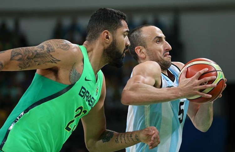 La Selección argentina de básquetbol dio una nueva muestra de carácter al vencer hoy 111-107 a Brasil en un vibrante partido que se definió en el segundo tiempo suplementario. Con más corazón que buen juego, el equipo dirigido por Sergio Hernández consiguió un triunfo clave en el Grupo B para avanzar a cuartos de final. En Argentina se destacaron Andrés Nocioni y Facundo Campazzo, quienes anotaron 37 y 33 puntos respectivamente. Con la clasificación ya en el bolsillo, Argentina enfrentará el lunes a las 19 a España. "A Nocioni hay que llevarlo en sillas de ruedas por todo lo que hizo y Campazzo también fue una máquina, pero es más joven. A los dos hay que hacerle una estatua de bronce por todo lo que dieron hoy", explicó Emanuel Ginóbili para sintetizar lo que fue el partido. Argentina no tuvo una gran actuación colectiva, pero estos dos jugadores sacaron la cara por el equipo, que fue todo el encuentro corriendo de atrás, salvo en el primer cuarto. El "Chapu", que terminó con 37 puntos y 11 rebotes, fue clave sobre todo en las primera parte de juego. En tanto, el base del Murcia anotó 33 y dio 11 asistencias y, a partir de tercer cuarto, se cargó el equipo al hombro. Argentina fue superior al rival en el primer cuarto e hizo pesar una tremenda efectividad en triples y una buena defensa. Así las cosas, tuvo 6-10 desde atrás de la "medialuna", con una notable producción de Andrés Nocioni, autor de cuatro tiros salvadores. Además, el equipo de Sergio Hernández dominó en los tableros e impuso el ritmo de partido, con posesiones más largas y sin tanto contragolpe. Con estas fórmulas, Argentina culminó el parcial 28-19. Sin embargo, el siguiente cuarto fue una pesadilla, donde Brasil no sólo que logró ponerse a tiro, sino que sacó una importante diferencia. El local tuvo en Benite a un tirador de triples imparable (salvo por una tapa genial de Ginóbili), más el aporte goleador de Guilherme y de Alex García, vital cuando ingresó desde la banca. Argentina falló mucho en ofensiva y le permitió al rival tomar rebotes fácilmente y que corra en las transiciones para conseguir tantos fácilmes. El equipo del "Oveja" Hernández sólo contó con el aporte solitario de Nocioni, pero no le alcanzó y terminó yéndose al descanso con 52-44. En el tercer cuarto, Argentina mostró una leve reacción a partir del ingreso de Facundo Campazzo. El base del Murcia fue agresivo a la hora de atacar y le dio dinámica a un equipo que había estado demasiado estático. La Selección dominó la primera mitad del cuarto, pero promediando la parte final, Brasil levantó el nivel a partir del buen rendimiento de Nené Hilario. El pivot de los Houston Rockets ganó casi siempre en la zona pintada y sacó provecho que Scola y Nocioni sumaron tres faltas y no defendieron tan fuerte para preservarse. Nené fue el artífice que el inicio del último cuarto sea con un marcador de 72-67 a favor del local. El cuarto cuarto tenía a Brasil seis puntos arriba cerca del cierre del partido, pero "El Alma" otra vez apareció en dos momentos claves. Primero fue Facundo Campazzo el encargado de recortar la diferencia con un triple y la última posesión le quedaba a Ginóbili para forzar un alargue. El jugador de los Spurs falló un triple, Campazzo tomó un inmenso rebote y asistió a Nocioni, que castigó por detrás de la medialuna. El primer tiempo extra comenzó netamente a favor de Brasil, que sacaba mucha ventaja con Nené Hilario en la zona pintada. El jugador de los Houston, además de ser el goleador de su equipo, sacó del juego por cinco faltas a Luis Scola. Hernández hizo una buena lectura del partido al colocar a Delfino, quedar con cuatro "bajitos" en cancha y que Nocioni pasara a jugar de pivot. En ofensiva, aparecieron otra vez "Chapu" y Campazzo para forzar una nueva prórroga después de quedar igualados en 95.En el inicio, un buen arranque de Argentina lo llevó a tomar ventaja de 103-95, con dos triples del base del Murcia. No obstante, Brasil se vino encima con la aparición de Leandrinho Barbosa, que consiguió 9 puntos en el tiempo extra. Luego de una mala noche desde la línea de tiros libres, Ginóbili erró dos tiros clave que pudieron haber sentenciado la historia. Sin embargo, tuvo su revancha: cuando el juego iba 109-107, tomó un rebote clave, le hicieron falta y desde la línea consiguió los dos puntos que sentenciaron al local. Fuente: Agencia de Noticias NA
