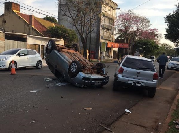 Por causas que se trata de determinar, Luis O. (33) perdió el control de su vehículo Fiat Palio cuando circulaba por la avenida Lavalle, entre Almirante Brown y Peyret, y chocó contra un Volkswagen Gol estacionado, lo que motivó su posterior vuelco.A raíz de este hecho vial no hubo lesionados. Se procedió al secuestro del Palio para las pericias y se estableció que el propietario del VW Gol es Hugo C.Fuente y Fotos: Policía de Misiones