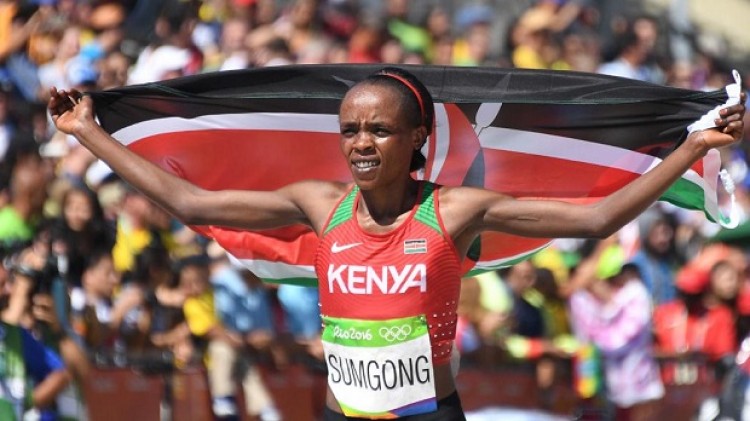 La keniata Jemima Jelagat Sumgong ratificó el poderío de su país en la larga distancia al coronarse con la medalla de oro en la maratón femenina de los Juegos Olímpicos de Rio de Janeiro disputada este domingo.Con un registro de 2:24:04, la ganadora se impuso a Eunice Jepkirui Kirwa de Bahrein (plata, 2:24:13) y a la etíope Mare Dibaba (bronce, 2:24:30).Por su parte, las tres atletas argentinas que participaron en la prueba quedaron por debajo de las cien primeras clasificadas: Rosa Godoy fue la mejor de ellas en el 110º lugar, Viviana Chávez la siguió en la posición 125º y María Peralta abandonó la competencia cuando promediaba el kilómetro 20 y se situaba 146ª.