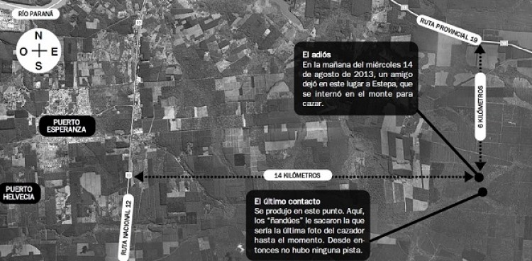 De la angustia y la desesperación al desánimo. Esas fueron parte de las etapas por las que debieron transitar los familiares de Andrés Estepa (53), el cazador que desapareció en pleno monte misionero el 14 de agosto de 2013, hace exactamente tres años. Desde entonces, no hubo ninguna novedad, ninguna pista, siquiera algún elemento que permita mantener viva la llama de la ilusión.“Yo lamentablemente tengo que decir que hoy por hoy ya no tengo esperanzas de encontrarlo con vida”, le dijo a PRIMERA?EDICIÓN Antonio, uno de sus hermanos, con el dolor aún palpable en la voz. “Tenemos presente la fecha y realmente estamos quebrados”, agregó el hombre desde el norte misionero.El dato que aún da vueltas en la cabeza del entrevistado y, en general, de cualquiera que recuerde el caso, tiene que ver con la última fotografía que se tiene de Estepa con vida. No se trata de una celebración familiar, sino de una imagen capturada por dos guardianes privados del predio donde el hombre cazaba, más conocidos como “ñandúes”. Los dos estuvieron en su momento demorados por la Justicia provincial y, ante las autoridades, aseguraron que se toparon con el cazador y le exigieron que se retirase del lugar. Como el hombre prometió hacerlo, se marcharon de la escena, siempre según su versión.Para Antonio, esos dos hombres saben algo más del paradero de su hermano. “Queremos que las autoridades no se olviden del caso y sigan investigando. Nosotros creemos que estas personas que lo vieron por última vez tienen que saber algo más”, dijo al respecto. Es que para la familia resulta imposible que Andrés se haya perdido en la inmensidad del monte misionero, ya que conocía la zona prácticamente como la palma de su mano. También descartan el ataque de un animal salvaje, ya que de esa manera al menos habrían quedado rastros en las inmediaciones de donde se lo vio por última vez.“Estamos quebrados”, repite Antonio, que junto a sus seres queridos vio encender la llama de aquella Esperanza el pasado sábado 9 de julio, cuando la Policía informó sobre el hallazgo de restos humanos cerca de donde Andrés desapareció, pero en dirección a la ruta provincial 19, que comunica Wanda con Andresito. Sin embargo, horas después todo volvió a caerse: los restos eran de otra persona.Esa pesadilla, ese círculo que no termina de cerrarse, se abrió en la mañana del miércoles 14 de agosto de 2013, cuando Estepa salió de su casa en el barrio San Cayetano de Wanda en compañía de un conocido que lo llevó hasta el Paraje Esperanza Centro, a casi veinte kilómetros de la zona urbana de Puerto Esperanza. Ese compañero despidió a Andrés en un camino de difícil acceso con la condición de buscarlo por la noche. Y así hizo. Sin embargo, Estepa no volvió a aparecer.Su propio hijo, sus hermanos, sus amigos, todos salieron a buscarlo. Más tarde, una vez que se radicó la denuncia, casi 50 policías rastrillaron la zona, pero no encontraron siquiera un rastro que permitiera aferrarse a alguna hipótesis. Desde entonces, la intriga y el dolor azotan a sus seres queridos, que siguen sin conseguir respuestas.?Tres años después, el paradero de Andrés Estepa se mantiene en el más profundo misterio.