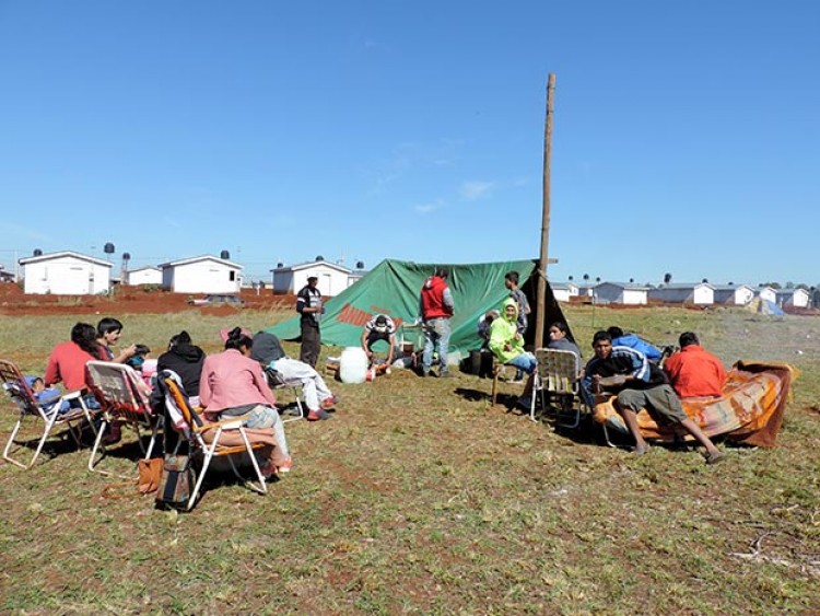 Más de 50 familias que hace una semana fueron desalojadas desde el barrio “Néstor Kirchner” usurparon terrenos que son propiedad del Instituto Provincial de Desarrollo Habitacional (Iprodha), por lo que el organismo los denunció ante la Justicia. “Se hizo la denuncia ante el juzgado en turno y ahora está todo en manos de la Justicia”, declaró el gerente general del Iprodha, Juan Carlos Descotte, al tiempo que recordó que en esas tierras, situadas en proximidades del autódromo de Posadas y que también pertenecen a otras empresas, “estábamos realizando lotes con servicios justamente para adjudicar a personas de menores recursos”. Dijo que quienes están intrusando, en un primer momento intentaron introducirse a las viviendas y que, como la policía los desalojó, se mudaron en frente. “Es una situación que no podemos admitir y que está en manos de la Justicia”, reiteró. A su entender, la situación es llamativa porque “esto es algo bastante organizado no sabemos por quién y fogoneados no sabemos por quién. La cuestión es que vienen muy organizados, con sus carpas, midiendo, poniendo estacas, distribuyendo los terrenos. Es una situación muy fea. Todo el mundo tiene que comprender que nosotros estamos trabajando justamente para tratar de ayudarlos, y con esta clase de actitud solamente logran entorpecer y hacer que se dilaten los tiempos”, lamentó.Descotte explicó a PRIMERA EDICIÓN que esos terrenos estaban destinados a ciudadanos de menores recursos que no pueden llegar a una casa y mucho menos comprar un terreno de forma privada. “Son lotes con servicio, pero no nos dejan trabajar y no nos dejan conectar el agua, la luz, delimitar, hacer las nivelaciones. Siempre hay gente de escasos recursos, quizás en la misma situación que los están intrusando, que están necesitando, pero no vamos a poder solucionar el problema”, acotó.Cerca de un centenar de lotes, el Iprodha levanta unas 60 viviendas “muy económicas”. La construcción está prácticamente terminada. “Faltaría la infraestructura básica, el agua y la luz. Todo lo que hacemos ahí es justamente para gente de pocos recursos o nulos. Todo el accionar de este otro grupo no hace mas que perjudicar a sus pares”, dijo el funcionario.El grupo de ocupantes está conformado por familias que ya fueron desalojadas desde el barrio Néstor Kirchner. Ocupaban un terreno privado en la Chacra 40 y hace una semana debieron abandonarlo por orden del juez Carlos Giménez. Aducen que no tienen lugar donde vivir e instalaron sus carpas en tierras que son del Iprodha y de privados. Los primeros días eran más de 50 familias, pero con el paso de los días los ocupantes se fueron sumando. “Fuimos desalojados el 11 de agosto y nos quedamos en la calle y como no tenemos adonde ir, decidimos instalarnos en el predio denominado Giovinazzo”, manifestó una de las mujeres. En nombre de sus pares insistió con que “queremos una solución y vamos a quedarnos hasta que alguien nos escuche, nos de una solución”. Antes del “Néstor Kirchner”, algunos alquilaban. Otras vivían con sus padres o parientes, pero nunca tuvieron vivienda propia. “No queremos casas, queremos tierras. Si nos sacan de este predio, vamos a ocupar otro; y así hasta que tengamos un lugar”, aseguró.