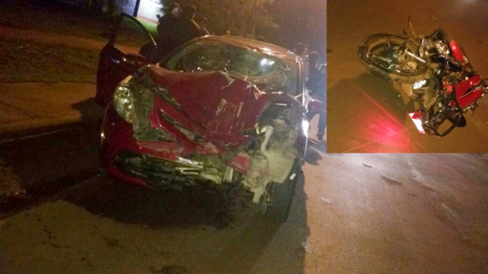 Por causas que se investigan, un vehículo Ford Fiesta conducido por Julio W.L (23) que circulaba en sentido Sur-Norte colisionó con una motocicleta Yamaha IBR al mando de Fernando Fabián Vázquez (24), quien circulaba en el mismo sentido.