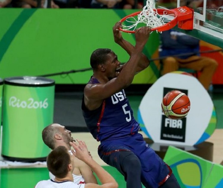 Estados Unidos no tuvo mayores contratiempos para quedarse por tercera vez consecutiva con la medalla de oro en el básquetbol masculino de los Juegos Olímpicos, al doblegar en la final a Serbia por 96-66, en partido jugado este domingo en el Arena Carioca I de Río de Janeiro y que significó el cierre de las competencias deportivas de Rio de Janeiro 2016.Al igual que lo ocurrido en las definiciones de Beijing 2008 y Londres 2012 (en ambos casos frente a España), el equipo norteamericano se quedó con la victoria y extendió la hegemonía. La progresión del cotejo, siempre favorable a los conducidos por Mike Krzyzewski, fue la siguiente: 19-15, 52-29, 79-43 y 96-66.La diferencia de 30 tantos resultó ligeramente inferior a los 37 logrados por los estadounidenses ante el mismo adversario en la última final del Mundial de España 2014 (129-92). El alero Kevin Durant resultó la llave para abrir el encuentro, al anotar 30 puntos (5-8 en dobles, 5-11 en triples, 5-6 en libres), repartir 4 asistencias y tomar 3 rebotes. También fue destacada la labor del interno DeMarcus Cousins, responsable de 13 puntos y 15 rebotes. Estados Unidos incrementó así a 76 el número de partidos oficiales invicto en competencias FIBA. El último tropiezo se dio en el Mundial de Japón 2006 frente a Grecia (95-101) en una de las semifinales. Cuarta medalla, primer broncePor su parte, el seleccionado español obtuvo la medalla de bronce gracias a un triunfo ajustado ante Australia por 89-88 en el Parque Olímpico de Barra da Tijuca.España logró así la cuarta presea en su historia y la tercera en forma consecutiva luego de las conquistas en Pekín 2008 y Londres 2012, cuando fue subcampeón en ambas ocasiones frente a Estados Unidos, que en la presente edición lo venció en semifinales, mientras que la primera fue en Los Ángeles 1984 (también de plata).El éxito de España estuvo en jaque hasta el último segundo, pero se resolvió con el corte del alero Víctor Claver en la posesión de Australia, sin logros en Juegos Olímpicos, que tras la pérdida del balón quedó lejos del aro y sufrió con resignación el pitido final.El pivote español Pau Gasol, con 31 puntos, fue el máximo anotador del partido, mientras que el base Patty Mills fue el goleador de Australia con 30. Ambos jugadores serán compañeros esta temporada de Emanuel Ginóbili en la franquicia San Antonio Spurs, que compite en la NBA.Fuente: Télam