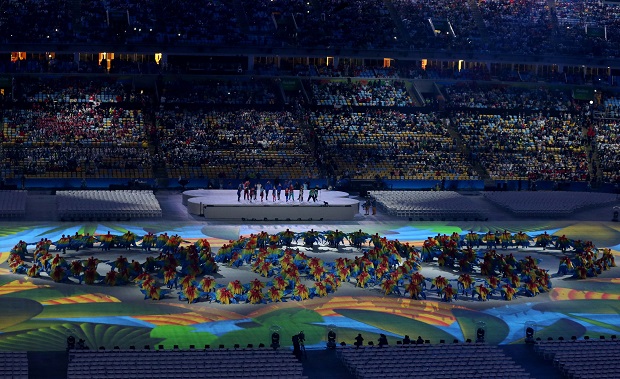 La ceremonia de clausura de los Juegos Olímpicos de Río de Janeiro comenzó puntualmente a las 20 en el estadio Maracaná, bajo una intensa lluvia, con melodías y bailes alusivos previos al desfile de todas las delegaciones partipantes, entre las que estuvo la argentina con la medallista dorada en judo, Paula Pareto, como abanderada.La albiceleste ondeó entre los representantes de Argelia y Armenia, con Pareto -ataviada con buzo celeste y blanco y pantalones negros- agitando acompasadamente la enseña nacional al son de la música que sonaba en el estadio mientras se acercaban a ella algunos compatriotas como el también presea de oro Santiago Lange.Llamó la atención una gran cantidad de deportistas participantes que optaron por cubrirse con "pilotines", para protegerse de la persistente lluvia que por momentos se convertía en aguaceros.Fuente: TélamFotos: Télam y Noticias Argentinas