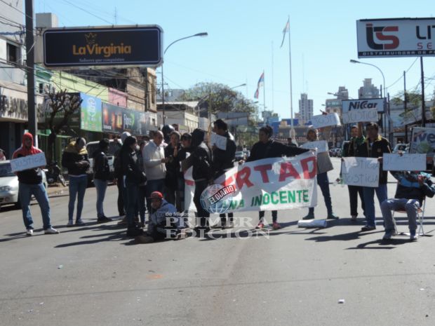 Durante la mañana de éste lunes, un grupo de alrededor de quince personas arribó al Juzgado de Instrucción 7 de Posadas, a cargo del magistrado Carlos Giménez, para reclamar la liberación de uno de los detenidos por el robo a una pareja perpetrado el jueves 28 de julio a la madrugada en cercanías del centro de Posadas.Los presentes, entre ellos familiares y conocidos, arribaron con pancartas y carteles: “Justicia para Quintana Inocente”. Cerca del mediodía, cortaron la avenida Uruguay por varios minutos.El caso De acuerdo a la investigación, el domingo 28 de julio, la Policía arrestó a “Keko” (29) y “Dani”(31), sobre quienes se montó una sigilosa vigilancia por parte de efectivos de la Dirección de Investigaciones y Delitos Complejos de la Policía provincial.“Keko” y “Dani”, según los investigadores, serían integrantes del grupo de cinco delincuentes que alrededor de las 2 del jueves 28 de agosto irrumpieron en una vivienda de Vicente Casares y Máximo Paz, donde también funciona un depósito para turistas y “paseros” que cruzan por el puente al Paraguay.Los ladrones, vestidos de civil, dijeron ser de Gendarmería Nacional y montaron un falso allanamiento “en busca de drogas y cigarrillos”, según dijeron sus víctimas, a quienes encañonaron. Sin embargo, poco les duró la simulación: enseguida comenzaron a buscar elementos de valor y dinero en efectivo. Y así se alzaron con un botín cercano a los 50 mil pesos, discriminado en billetes nacionales, guaraníes y dólares, además de alimentos, bebidas varias y hasta motorrepuestos.Fotos: M.Fedorischak
