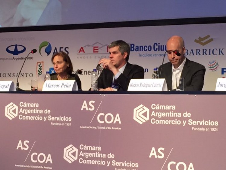 El jefe de Gabinete, Marcos Peña, afirmó este jueves que la Argentina "vive un clima de libertad", al comparar ante hombres de negocios, políticos y diplomáticos la situación del país durante el kirchnerismo con las políticas aplicadas en el gobierno de Mauricio Macri, y señaló que a la inflación "no la generan los empresarios, sino el Estado"."Estamos logrando bajar la inflación, cosa que habíamos prometido. Y también hay que destacar el coraje del Presidente, que se plantó frente a una visión bastante generalizada en la Argentina, que decía que el responsable de la inflación era el empresario. El Presidente pensaba que la inflación la generaba el Estado y dijo: yo la voy a resolver", les dijo Peña a los  empresarios reunidos en el Alvear Palace Hotel, donde se realizó el 13º Consejo de las Américas, organizado por la Cámara Argentina de Comercio (CAC).En ese marco, Peña señaló que durante el kirchnerismo "en la Argentina se vivía con miedo a lo que iba a pasar en el futuro y a opinar libremente por temor a lo que podía pasar" y que ahora "se vive una realidad distinta"."El cambio no es fácil, implica salir de la comodidad, plantearse desafíos, trabajar, esforzarse", definió Peña y señaló que otro pilar del gobierno de la alianza Cambiemos es "decir la verdad, escucharnos, no agredirnos, ir al mundo y decir que la Argentina está para ser protagonista del siglo XXI"."Lo que vivimos en los últimos años no creemos que sea la raíz de nuestro problema, sino un síntoma de nuestro problema. Creemos que el miedo es lo que germina el autoritarismo, no la confianza. Son los liderazgos temerosos los que se encierran en sí mismos y empiezan a atropellar a todo el mundo y a las instituciones", aseveró el jefe de Gabinete de Ministros.Para el funcionario, la sociedad hoy vive "claramente un clima de libertad, que se expresa en los medios y día a día en la calle".Fuente: Noticias Argentinas